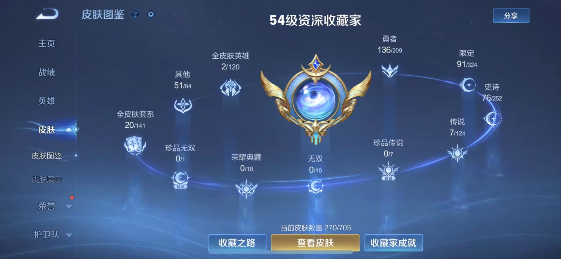 - PX_2111807-Q/永恒钻石/141皮肤/117英雄/1典藏/0珍品无双/0无双/4珍品传说/11传说/37史诗/5稀有英雄 【4 珍品传说】大耳狗之梦 瑶,怪盗基德 马可波罗,器灵·落星盏 嫦娥,江户川柯南 鲁班七号, 【1 典藏皮肤】拾光映像 瑶, 【11 传说皮肤】花朝如约 蔡文姬,时之祈愿 瑶,游龙清影 西施,仲夏夜之梦 貂蝉,淬星耀世 赵云,挚爱花嫁 大乔,心动手记 朵莉亚,愿照·