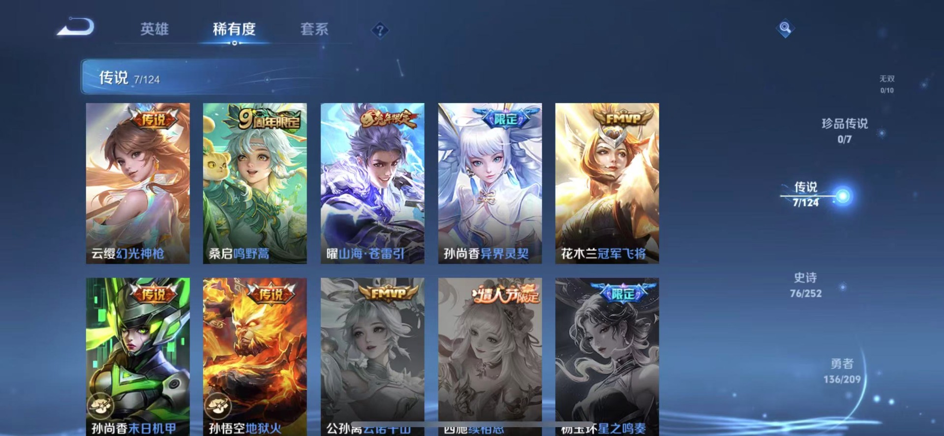 [11529248]V8 7传说 124英雄 270皮肤 可修改实名 钱包无法修改 支付冻结 优质装备:冠军飞将,末日机甲-孙尚香(绿蚂蚱),地狱火,山海·苍雷引(电光曜子) 传说皮:幻光神枪 珍宝阁皮:万物之道,蔷薇恋人,女武神 限定皮:鸣野蒿,梅西,异界灵契(白毛香),飞衡(韩信年限),遇见飞天,高山流水,五谷丰年,冰锋战神,游园惊梦,梁祝,逐梦之星,李小龙,默契交锋-花木兰,猪悟能,青春决赛季,冰霜恋舞曲,神奇女侠,山海·玄木吟(马可年限) 史诗皮:星界战将,紫霞仙子,苍穹之光,特工魅影,千年之狐,江河有灵,百解令(蒙犽),蒙恬荣光圣徽,无限星赏官,冰冠公主,偶像歌手,电玩·爆裂旋风,末日机甲-吕布,猫狗日记-孙策,时之恋人-孙尚香,乱世虎臣,节奏热浪,修罗,女仆咖啡,水果甜心,天才门将,星夜王子,功夫厨神,德古拉伯爵,暗隐猎兽者,幽灵船长,鬼剑武藏,舞动绿茵,纤云弄巧,乘风破浪,逐浪之夏,水晶猎龙者,曙光守护者,热力回旋,箭羽风息,金属风暴,原初追逐者,圣诞狂欢,鹰眼统帅,王者之锤,暗夜贵公子,魅力维加斯,黎明之约,赏金猎手,无心