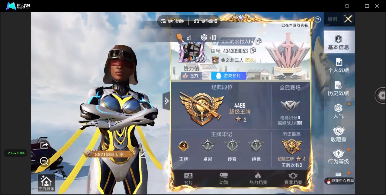 - [11687811]总资产:97M 6干员外观 1近战传说 8传说枪械 哈夫币:74.212K 高级安全箱(9.17到期) 可二次 可修改实名 优质装备:近战-黑海 烽火地带段位:钻石 全面战场段位:军士长 传说武器皮肤:SMG45冲锋枪-骑士,M4A1突击步枪-阿米娅,CAR-15突击步枪-阿米娅,AWM狙击步枪-捞点薯条,腾龙突击步枪-捞点薯条,93R-捞点薯条,勇士冲锋枪-能天使-午夜邮差 史诗武器皮肤:K437突击步枪-私人定制(典藏),Ash-12战斗步枪-守夜人,M16A4突击步枪-竞赛选手,PKM通用机枪-守夜人,SG552突击步枪-尖端治疗,PKM通用机枪-荒野求生,勇士冲锋枪-深海恐惧,SR-3M紧凑突击步枪-荒野求生,SV-98狙击步枪-林中猎手,PTR-32突击步枪-英雄,SVD狙击步枪-荒野求生,SV-98狙击步枪-囚徒,SCAR-H战斗步枪-囚徒,腾龙突击步枪-无垢,MP7冲锋枪-无垢,PSG-1射手步枪-无垢,沙漠之鹰-曙光,Vector冲锋枪-阿萨拉文明 干员外观:红狼-蚀金玫瑰,骇爪-水墨云图,无名-夜鹰,威龙-飞虎,蜂医-送葬人·无题密令(S5),露娜-黑·天际线