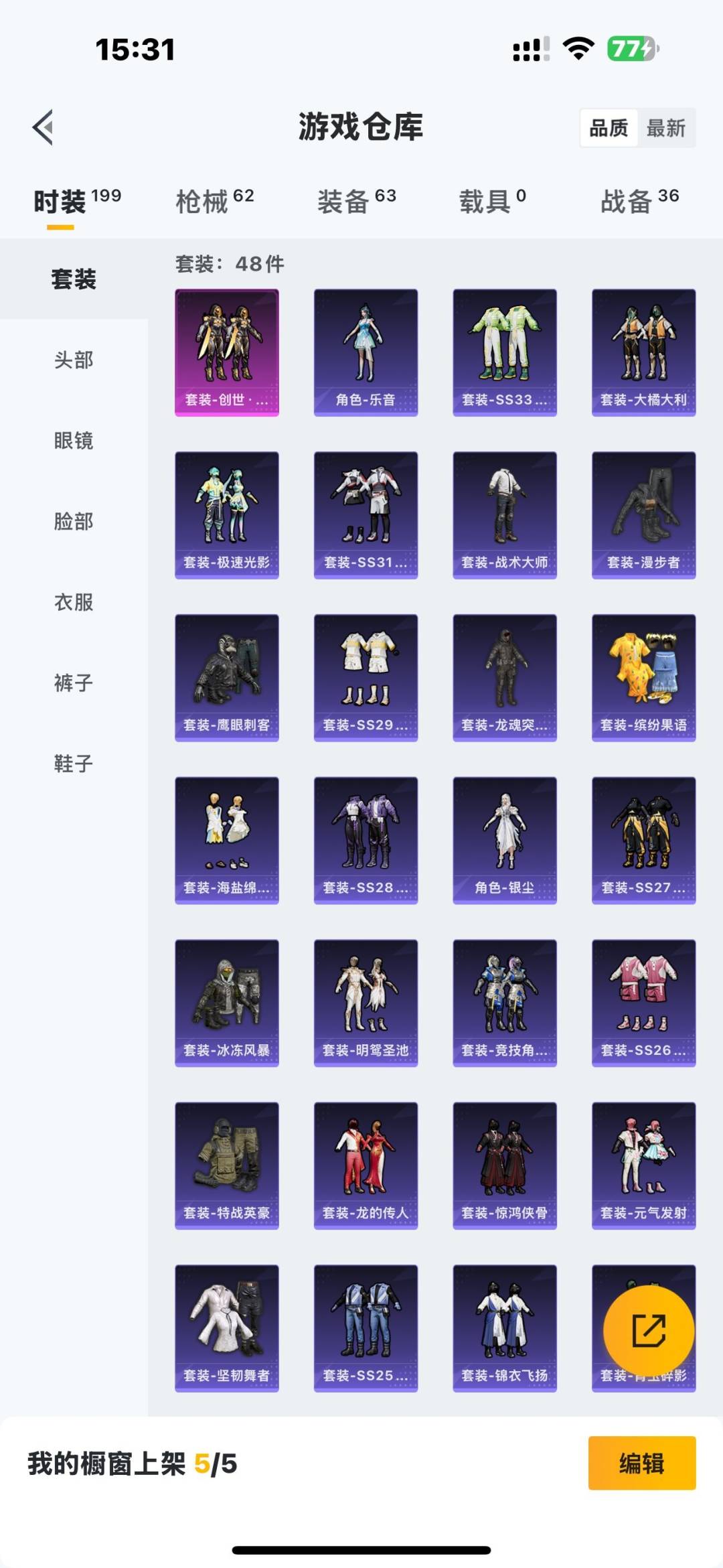 [11529428]1粉装 5特效枪 1印记 可二次 可修改实名 优质装备:M416五爪金龙,AKM绿萝繁花,SCAR-L-锦绣绵绵,七级M416-五爪金龙,MK14-甜梦熊击,Kar98K-巳巳如意 热门装扮:创世·救赎,鹰眼刺客 五级特效枪:五级MK14-甜梦熊击,五级SCAR-L-锦绣绵绵,五级AKM-绿萝繁花 一级特效枪:一级Kar98K-巳巳如意 紫色装扮:田园牧歌,轻风白浪,SS22特训,SS31特训套装,极速光影,SS33特训套装,乐音,星梦畅游,竞技角斗士,长空猛禽,缤纷果语,耀眼新星,荣耀,蓝色运动,龙腾端午,魅力单车,龙的传人,龙魂突击队,坚韧舞者,白色伏地魔,特战英豪,特殊使命,特训学院,SS29特训,SS28特训,竞技名士,银尘,惊鸿侠骨,神气柴柴,懵萌河马,SS24特训(SS24特训套装),SS25特训,元气发射,锦衣飞扬,SS27特训,明鸳圣池,SS26特训,云丝凤蟒,大橘大利,耀粉歌者,青玉碎影,漫步者,冰原奔狼,冰冻风暴,光之冒险 优质战备:忍者神龟降落伞,江南烟雨降落伞,喜羊羊与灰太狼降落伞,未来歌姬降落伞