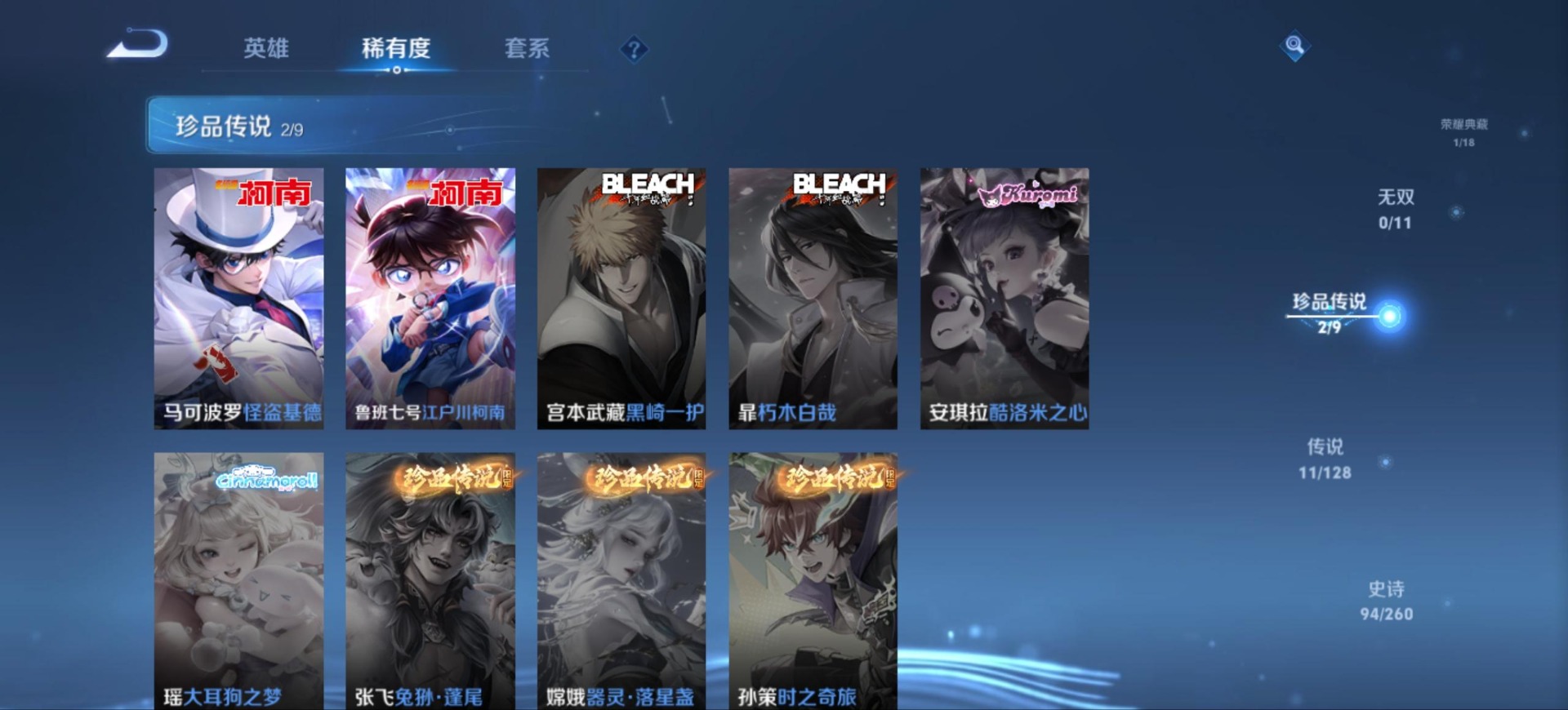 [11529503]V8 1典藏 2珍品传说 11传说 126英雄 334皮肤 典藏英雄武则天 可修改实名 优质装备:鸣剑·曳影,江户川柯南,怪盗基德,云鹰飞将(小将军),地狱火,地狱之眼,乞巧织情,电玩·雷克斯,涂山容容 传说皮:幻光神枪 珍宝阁皮:蔷薇恋人,女武神 限定皮:愿照·岁时盈(虞姬年限),愿照·众生和(妲己年限),逐霄战戟,鸣野蒿,至尊宝,时雨天司(水龙头),遇见飞天,五谷丰年,游园惊梦,梁祝,逐梦之星,天狼溯光者,辉光之辰,大圣娶亲 史诗皮:鸭鸭历险记-刘禅,化蝶舞,灵蛊蚀心,星界战将,龙之律动,石田雨龙,百相守梦-周瑜,茶境仙,破空之剑,蒙犽顽岩魄,蔬乡物语(鲁班七号),百相守梦-百里守约,百相守梦-黄忠,织梦人,遇见神鹿,紫霞仙子,电玩小子(小书包),黄金分割率,特工魅影,千年之狐,江河有灵,魅语,百解令(蒙犽),高渐离燃音魔法,蒙恬荣光圣徽,冰冠公主,青蛇,偶像歌手,电玩·兔顽号,电玩·爆裂旋风,龙骑士(小龙虾),末日机甲-吕布,猫狗日记-孙策,猫狗日记-大乔,时之恋人-孙尚香,乱世虎臣,节奏热浪,女仆咖啡,摇滚巨星,水果甜心,绅士熊喵,天才门将,星夜王子,心灵骇客,功夫厨神,德古拉伯爵,暗隐猎兽者,幽灵船长,鬼剑武藏,心灵战警,乐园奇幻夜,天秀·启明,地狱岩魂,纤云弄巧,繁星吟游(呼啦呼啦),拒霜思,缤纷独角兽,乘风破浪,逐浪之夏,水晶猎龙者,曙光守护者,箭羽风息,金属风暴,圣诞狂欢,圣诞恋歌,鹰眼统帅,暗夜贵公子,魅力维加斯,黎明之约,未来纪元-赵云
