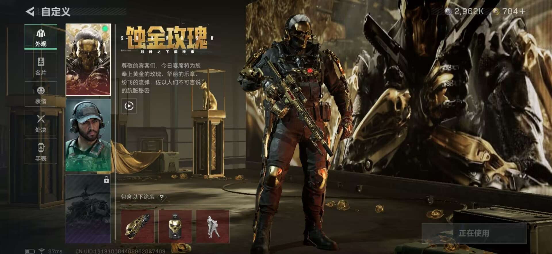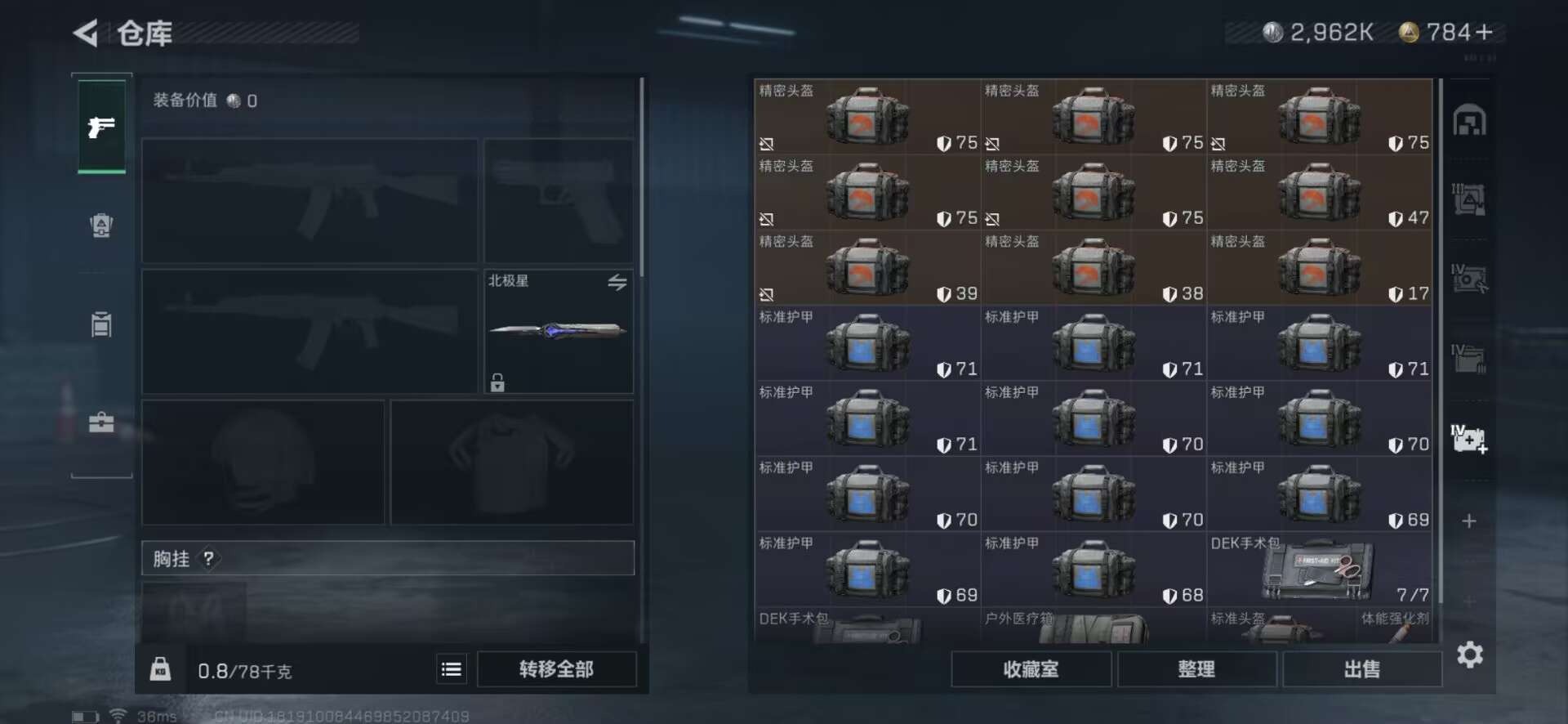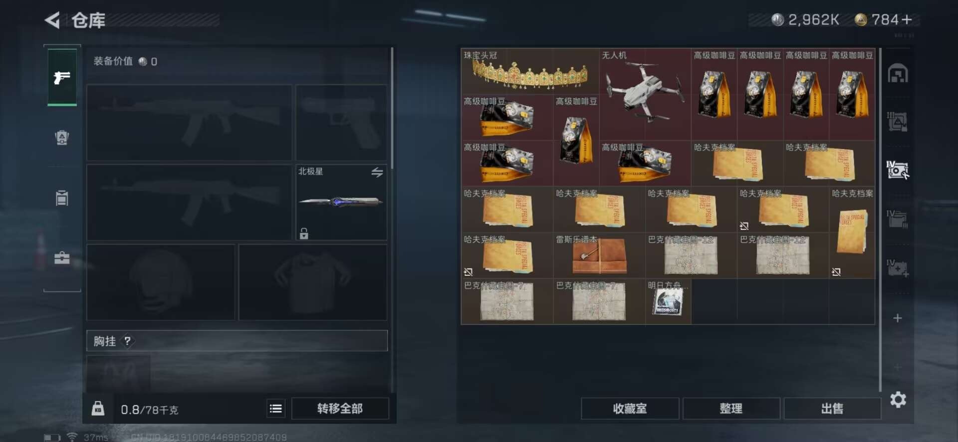 [11529544]总资产:97.9M 1干员外观 2近战传说 19传说枪械 哈夫币:2.962K 高级安全箱(9.17到期) 可二次 可修改实名 优质装备:近战-黑海,近战-北极星 烽火地带段位:黑鹰 全面战场段位:上等兵 传说武器皮肤:UZI冲锋枪-特斯拉线圈,M16A4突击步枪-狩猎时刻,AK-12突击步枪-特斯拉线圈,SR-3M紧凑突击步枪-特斯拉线圈,勇士冲锋枪-能天使-午夜邮差,Vector冲锋枪-狩猎时刻,G3战斗步枪-狩猎时刻,M250通用机枪-游乐场,M14射手步枪-工业审判,复合弓-黑-天际线,K437突击步枪-北极星,QCQ171冲锋枪-北极星,725双管霰弹枪-送葬人-无题密令,M4A1突击步枪-阿米娅,M4A1突击步枪-蚀金玫瑰,MP5冲锋枪-黑海,QJB201轻机枪-黑海 史诗武器皮肤:Ash-12战斗步枪-守夜人,M16A4突击步枪-竞赛选手,PKM通用机枪-守夜人,AS Val突击步枪-尖端治疗,M700狙击步枪-守夜人,SG552突击步枪-尖端治疗,SR-25射手步枪-尖端治疗,M1014霰弹枪-林中猎手,AKM突击步枪-林中猎手,SV-98狙击步枪-林中猎手,PTR-32突击步枪-英雄,PKM通用机枪-荒野求生,腾龙突击步枪-无垢,MP7冲锋枪-无垢,PSG-1射手步枪-无垢,SVD狙击步枪-荒野求生,SR-3M紧凑突击步枪-荒野求生,SVD狙击步枪-阿萨拉工艺 干员外观:红狼-蚀金玫瑰