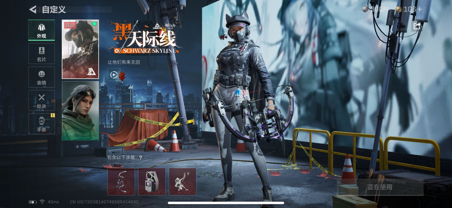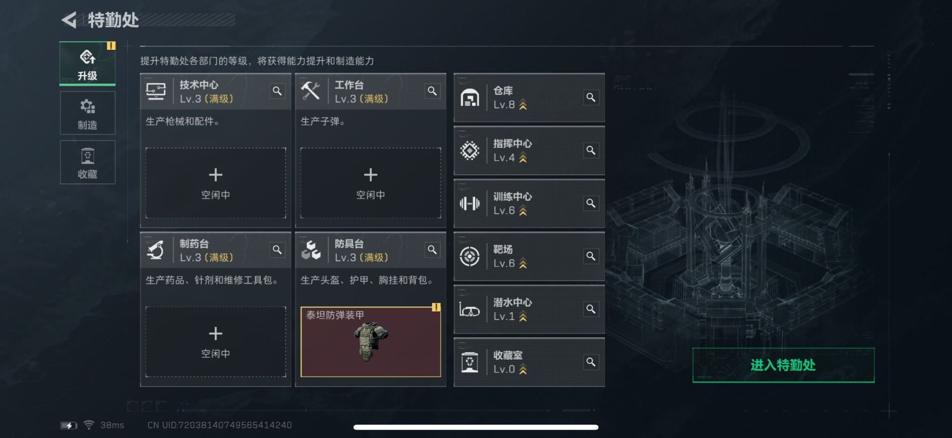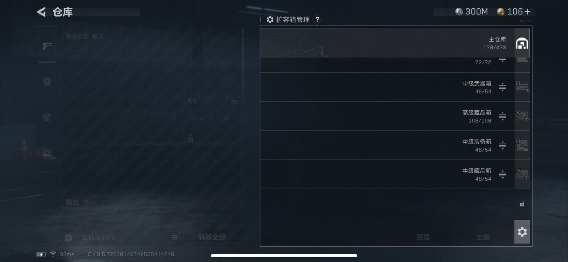 - [11268240]总资产:112.2M,哈夫币:2874W,武器皮肤:2,钻石,【安全箱】基础安全箱;【特勤处等级】仓库LV.6,靶场LV.4,训练中心LV.4;【干员皮肤】红狼蚀金玫瑰,骇爪水墨云图;【近战武器】近战武器-影锋,近战武器-黑鹰;【可二次实名】