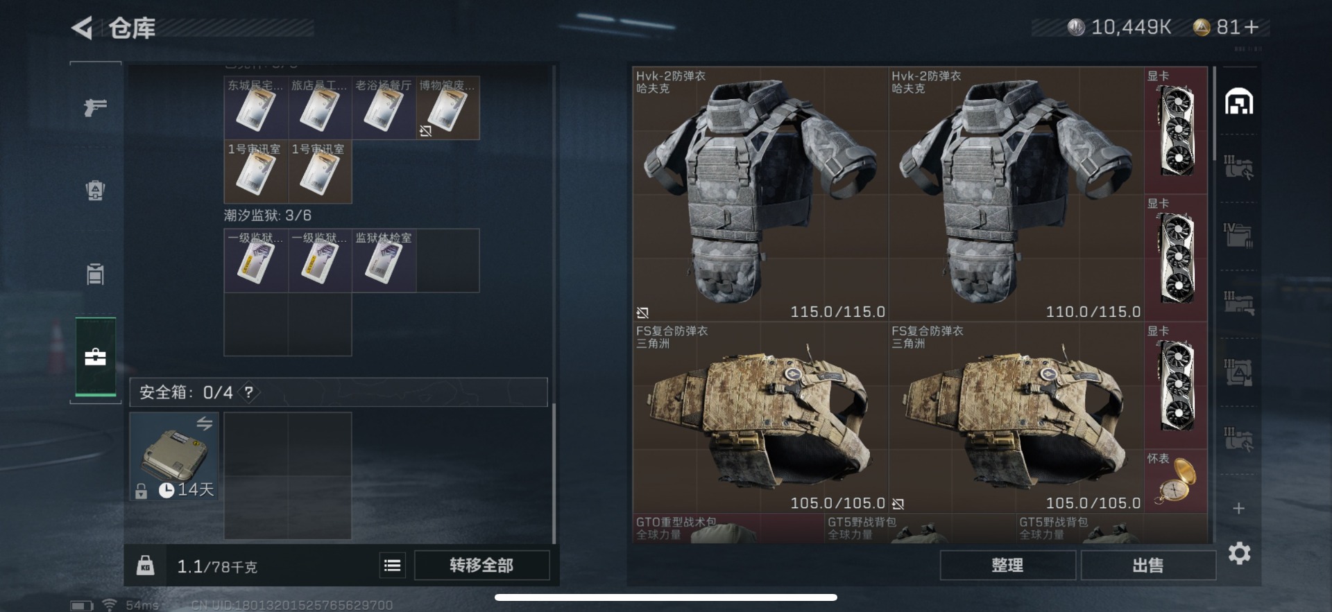 [11529730]总资产:101.7M 1干员外观 9传说枪械 哈夫币:10.449K 进阶安全箱(9.17到期) 可二次 可修改实名 烽火地带段位:黑鹰 全面战场段位:无段位 传说武器皮肤:M16A4突击步枪-狩猎时刻,AWM狙击步枪-捞点薯条,腾龙突击步枪-捞点薯条,93R-捞点薯条,勇士冲锋枪-能天使-午夜邮差,Vector冲锋枪-狩猎时刻,G3战斗步枪-狩猎时刻,复合弓-黑-天际线,M4A1突击步枪-阿米娅 史诗武器皮肤:M700狙击步枪-蝮蛇,M16A4突击步枪-竞赛选手,SV-98狙击步枪-林中猎手,SV-98狙击步枪-囚徒,SVD狙击步枪-阿萨拉工艺 干员外观:露娜-黑·天际线