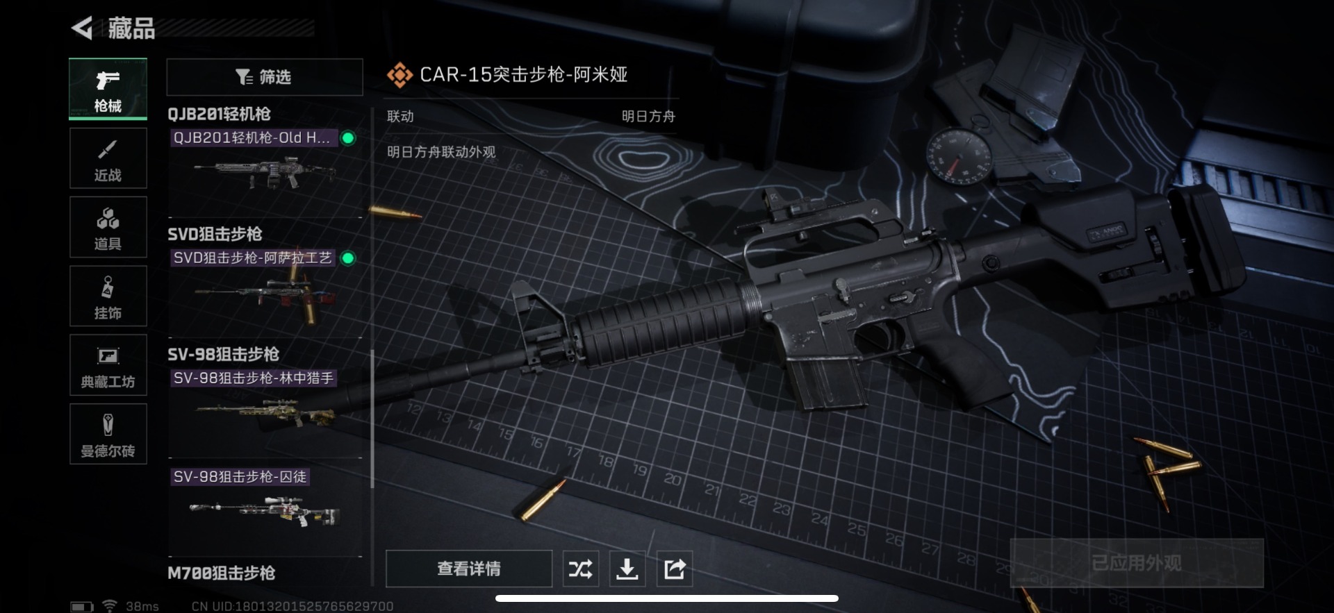 - [12289590]总资产:250.7 1干员外观 1近战传说 12传说枪械 顶级安全箱(9.17到期) 可二次 可修改实名 优质装备:近战-黑海,顶级安全箱(3x3) 烽火地带段位:三角洲巅峰 全面战场段位:列兵 哈夫币:119 传说武器皮肤:SR-25射手步枪-水墨云图,AK-12突击步枪-夜鹰,SMG45冲锋枪-骑士,复合弓-黑-天际线,AWM狙击步枪-捞点薯条,腾龙突击步枪-捞点薯条,勇士冲锋枪-能天使-午夜邮差,725双管霰弹枪-送葬人-无题密令,M7战斗步枪-维京,M4A1突击步枪-白玫瑰,QBZ95-1突击步枪-破军 史诗武器皮肤:SV-98狙击步枪-囚徒 干员外观:骇爪-水墨云图