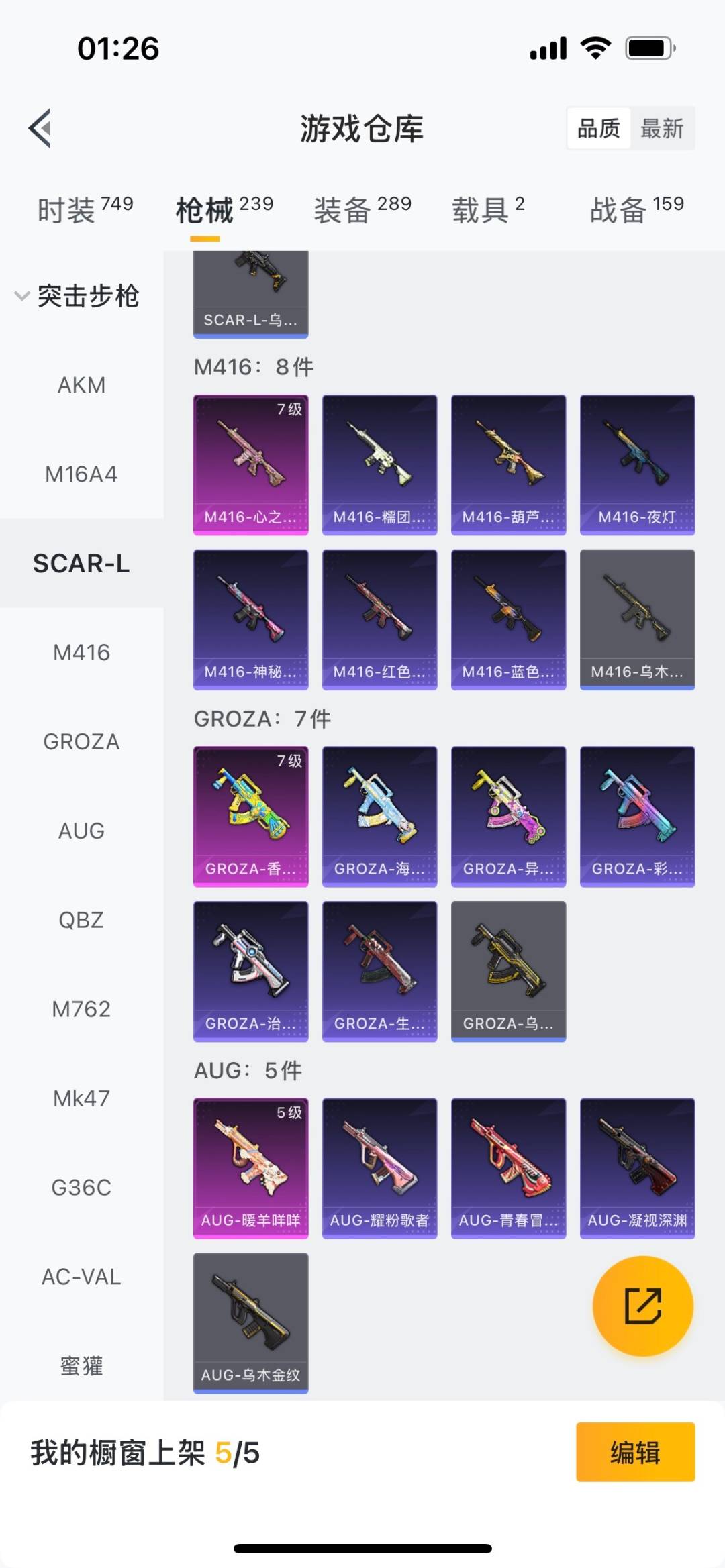 M416-心之恋语,GROZA-香水柠檬,AUG-暖羊咩咩,Kar98K-巳巳如意,UMP45-量子极限