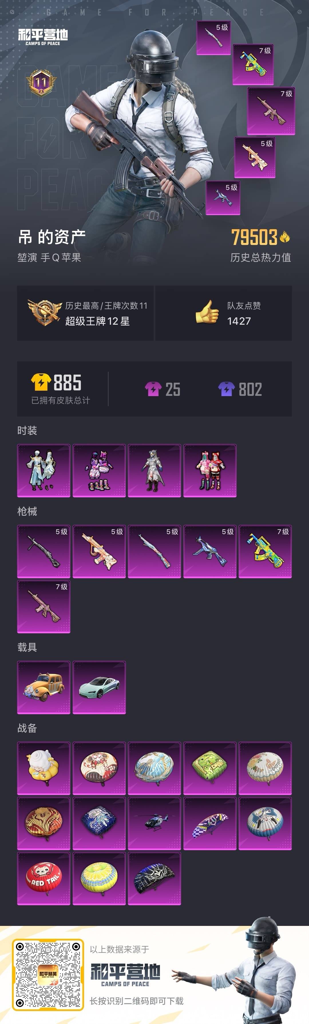 [11529727]4粉装 6特效枪 2载具 11印记 可二次 可修改实名 身法装备:8号机(新粉螳螂) 优质装备:特斯拉Roadster(水滴蓝),M416心之恋语,Groza香水柠檬,银刃赛罗,俏皮狐尾,七级GROZA-香水柠檬,七级M416-心之恋语,UMP45量子极限,AUG-暖羊咩咩,Kar98K-巳巳如意 热门装扮:蓝莓炮弹,金丰海韵,好奇恐龙 载具:空客H135-蔚蓝之翼,萌喵橘座 稀有枪皮:DP-28-豹影疾电 五级特效枪:五级UMP45-量子极限,五级Kar98K-巳巳如意,五级DP-28-豹影疾电,五级AUG-暖羊咩咩 紫色装扮:SS22特训,SS23特训,娇憨猪猪,酸甜橘柚,暖心橘喵,萌趣咩咩,SS21特训,SS31特训套装,SS2特训,SS3特训,SS5特训,人气偶像,军械专家,冰原使者,,冷焰舞者,凛冬战士,刚毅裁决者,北国孤狼,千禧之恋,SS30特训套装,SS33特训套装,青涩时光,SS20特训,青春冒险家,潮流游乐家,SS15特训,暗夜傀儡,时空追击者,暴风机械师,SS16特训,爆裂葡萄,快乐星愿,遗落祭司,冰爽海盐,银白舞王,SS13特训,骁骑迪迦,诡谋托雷基亚,浪漫樱花,治愈之星,迅捷之星,科技之星,SS14特训,萌趣颜团子,特种颜团子,飞驰魅影,音速流光,SS19特训,吉莉礼服,雪兔飞飞,瑞龙福将,团圆交子,醒狮腾龙,SS17特训,炫光向阳,异彩先驱,缤纷焰火,SS18特训,都市魅力,酒红色名流,酷潮明星,野性战心,长空猛禽,雪山征服者,雪山精英,霓虹极客,霓虹街区,青年教官,迎春赐吉,缤纷果语,荣耀,蓝彩潮人,蓝色运动,虎虎生威吉莉,街头潮人,飞行日记,龙腾端午,骑行爱好者,魅力单车,鹤鸣,麻辣教官,黄色伏地魔,黄色名流,黄色运动,黎明保卫者,黑色伏地魔,龙的传人,龟仙人,冰河战士,龙魂突击队,蝶变,香桃花海,熔岩游骑兵连帽夹克,极速红龙,柠萌假日,格斗先锋,橘黑制服,沙漠兵团,海滨突袭者,深蓝色名流,滨海假日,幻影武者,圣诞大吉,坚韧舞者,夏日音浪,夜莺强袭者,完美偶像,帅气教官,幻世战舞者,怒火燎原,战地督导,战地菁英,探宝勇士,湖蓝色名流,滨海厨神,绮丽涂鸦,疯狂小兔子,白色伏地魔,破晓战魂,破蛋小黄鸡,神秘领域,甜蜜告白,福星高照,空岛之星,空投萌叽,竞技勇士朋克,竞技达人朋克,红色运动,甜蜜熊情侣,王牌教练,牛气冲天,灰色格斗者,灼焰舞