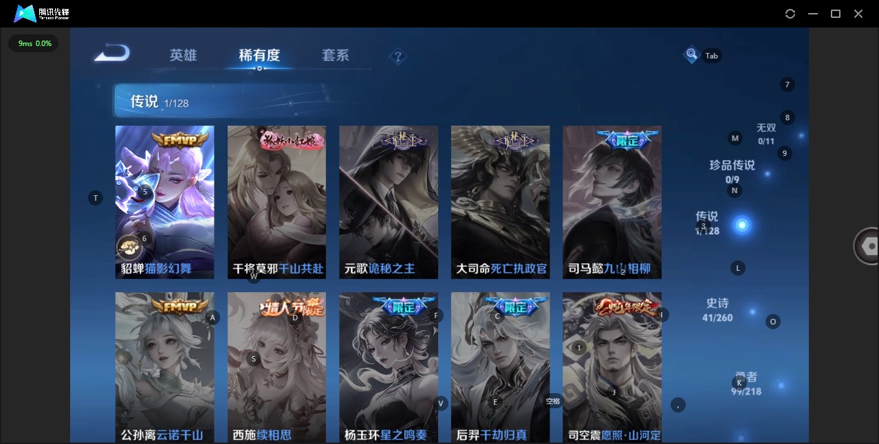 - [11527288]V6 4传说 123英雄 159皮肤 可修改实名 优质装备:黄金狮子座,一念神魔 珍宝阁皮:妄想食味,胡桃夹子 限定皮:鸣野蒿,白虎志(电光耗子),飞衡(韩信年限),五谷丰年,青龙志(铠年限),梁祝,御风骁将(吕布年限),李小龙 史诗皮:星界战将,谪仙醉月,龙之律动,百相守梦-黄忠,紫霞仙子,特工魅影,千年之狐,江河有灵,蒙恬荣光圣徽,冰冠公主,偶像歌手,修罗,水果甜心,星夜王子,德古拉伯爵,幽灵船长,鬼剑武藏,舞动绿茵,乘风破浪,逐浪之夏,水晶猎龙者,曙光守护者,原初追逐者,圣诞狂欢,鹰眼统帅,魅力维加斯,黎明之约,未来纪元-赵云