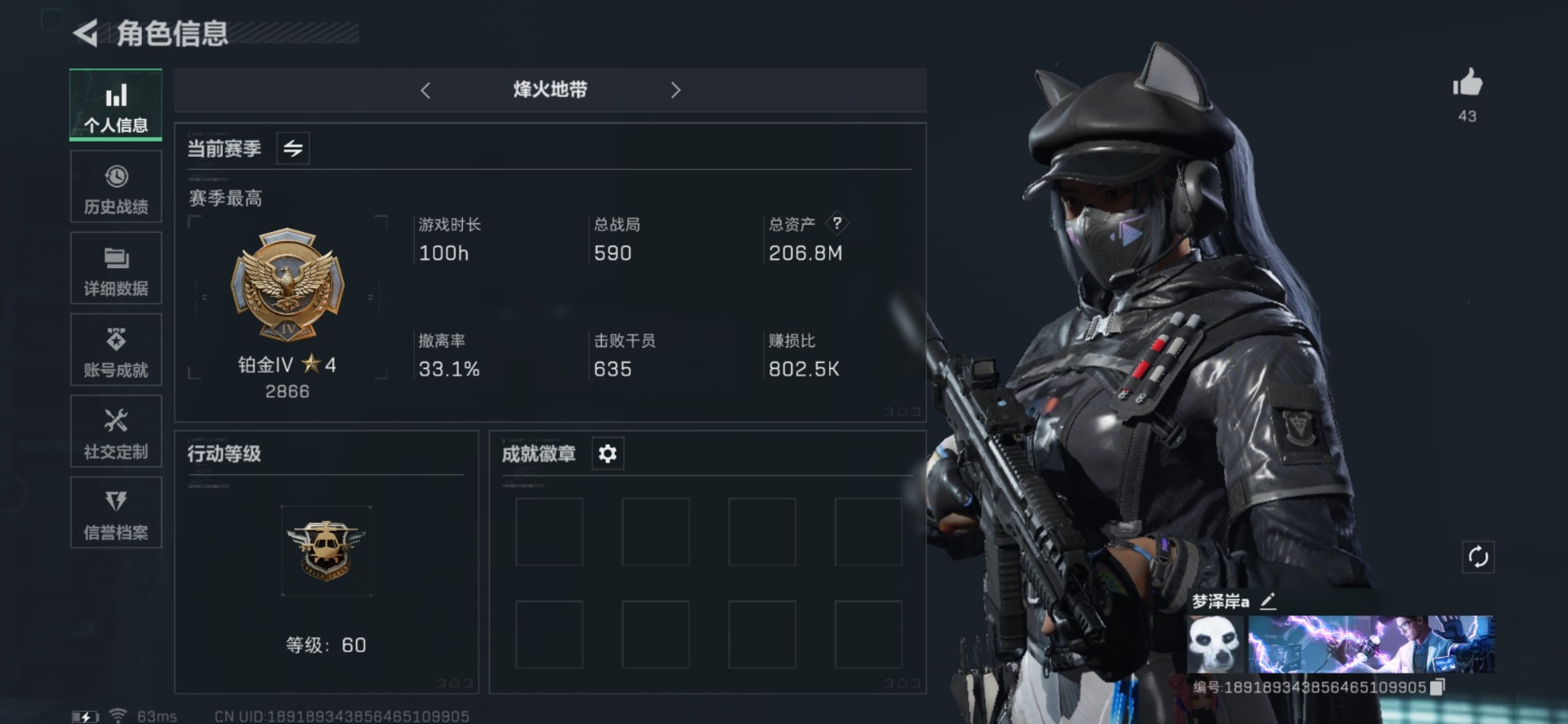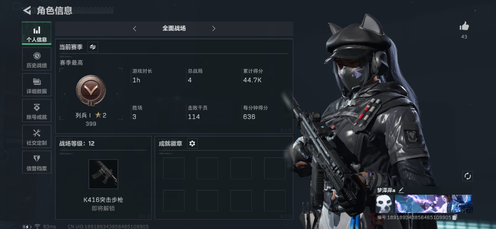 [11529844]总资产:206.8M 1干员外观 12传说枪械 哈夫币:42.529K 高级安全箱(2×3)9.15号到期 可二次 可修改实名 烽火地带段位:铂金 全面战场段位:列兵 传说武器皮肤:AK-12突击步枪-夜鹰,SMG45冲锋枪-骑士,93R-捞点薯条,AWM狙击步枪-捞点薯条,腾龙突击步枪-捞点薯条,AK-12突击步枪-特斯拉线圈,CAR-15突击步枪-阿米娅,SR-3M紧凑突击步枪-特斯拉线圈,UZI冲锋枪-特斯拉线圈,勇士冲锋枪-能天使-午夜邮差,M4A1突击步枪-阿米娅,725双管霰弹枪-送葬人-无题密令 干员外观:露娜-黑·天际线