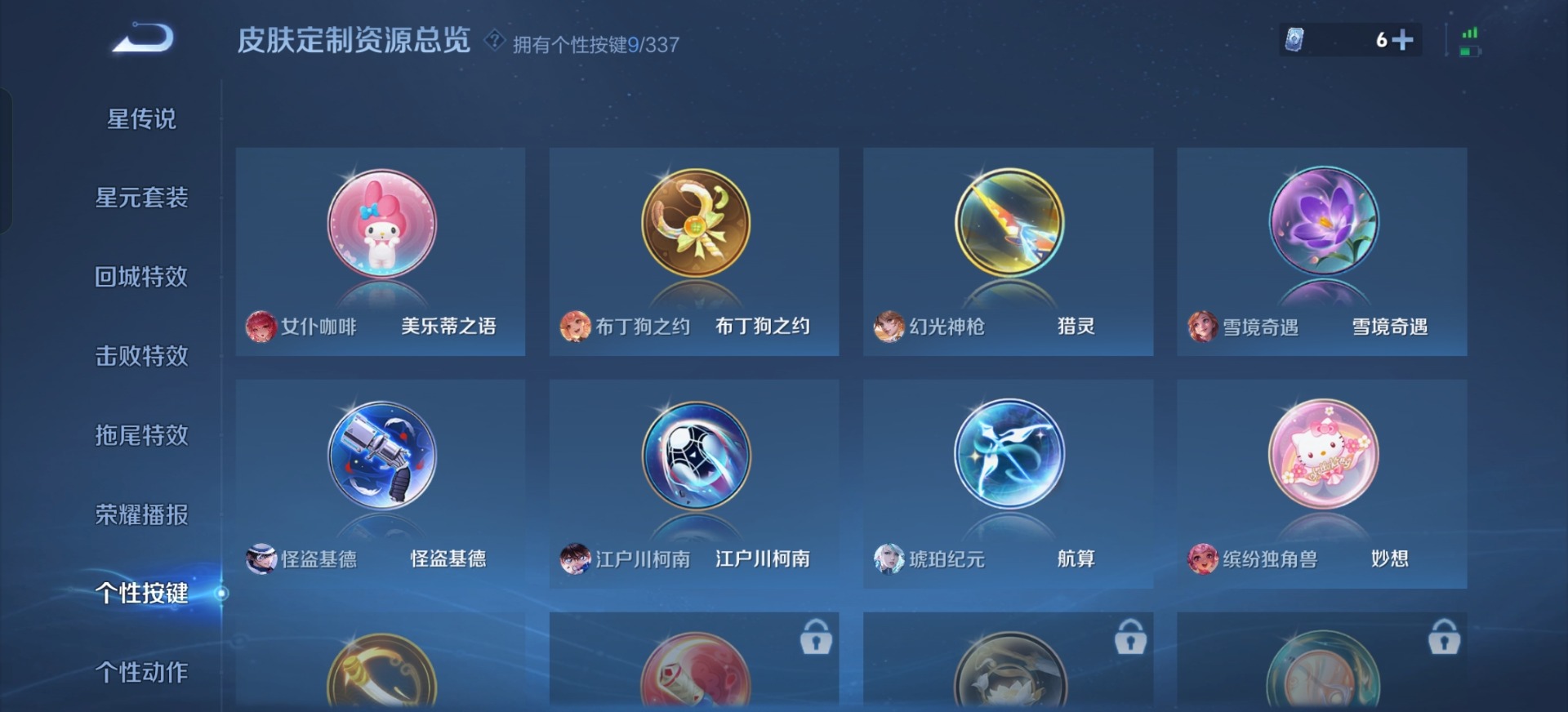 高渐离燃音魔法,夏侯惇乘风破浪,阿轲节奏热浪,铠曙光守护者,伽罗箭羽风息,廉颇地狱岩魂,伽罗琥珀纪元,小乔缤纷独角兽,孙策猫狗日记,不知火舞魅语,赵怀真器灵·浮梦炉,鲁班七号电玩小子,项羽苍穹之光,露娜紫霞仙子,诸葛亮黄金分割率,刘禅天才门将,宫本武藏鬼剑武藏,公孙离无限星赏官,兰陵王暗隐猎兽者,貂蝉圣诞恋歌,花木兰水晶猎龙者,李白千年之狐,安琪拉心灵骇客,蒙犽百解令,杨戬天秀·启明,白起星夜王子,嬴政摇滚巨星,程咬金功夫厨神,雅典娜冰冠公主,百里守约特工魅影,李元芳逐浪之夏,墨子金属风暴,蔡文姬舞动绿茵,王昭君偶像歌手,嫦娥拒霜思,橘右京修罗