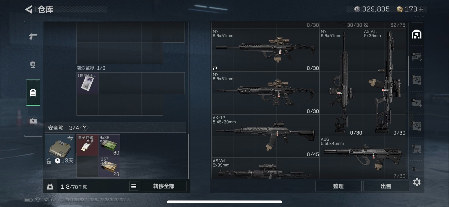 [11529930]总资产:80.4M 1干员外观 10传说枪械 哈夫币:329.835K 进阶安全箱(9.17到期) 可二次 可修改实名 烽火地带段位:三角洲巅峰 全面战场段位:军士长 传说武器皮肤:UZI冲锋枪-特斯拉线圈,AWM狙击步枪-捞点薯条,腾龙突击步枪-捞点薯条,93R-捞点薯条,AK-12突击步枪-特斯拉线圈,SR-3M紧凑突击步枪-特斯拉线圈,勇士冲锋枪-能天使-午夜邮差,复合弓-黑-天际线,M4A1突击步枪-阿米娅,AK-12突击步枪-夜鹰 史诗武器皮肤:Ash-12战斗步枪-守夜人,M16A4突击步枪-竞赛选手,PKM通用机枪-守夜人,AS Val突击步枪-尖端治疗,M700狙击步枪-守夜人,SR-25射手步枪-尖端治疗,M1014霰弹枪-林中猎手,勇士冲锋枪-深海恐惧,SG552突击步枪-深海恐惧,AKM突击步枪-林中猎手,SVD狙击步枪-暗夜猎手,SV-98狙击步枪-林中猎手,PTR-32突击步枪-英雄,SCAR-H战斗步枪-囚徒,Vector冲锋枪-阿萨拉文明,SVD狙击步枪-阿萨拉工艺,M700狙击步枪-竞技风 干员外观:露娜-黑·天际线