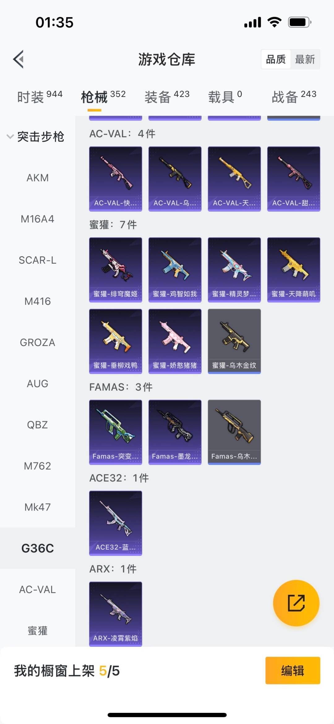 M416-风花雪月,M416-五爪金龙,GROZA-镜光银凌,AUG-暖羊咩咩,Kar98K-巳巳如意