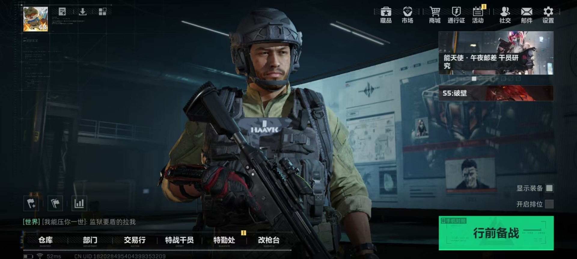 - [11519713]总资产:35.3 5干员外观 3近战传说 18传说枪械 顶级安全箱(3×3)9.15号到期 可二次 可修改实名 烽火地带段位:黑鹰 全面战场段位:上等兵 哈夫币:2.457 传说武器皮肤:近战-影锋,近战-黑海,近战-北极星,QBZ95-1突击步枪-王牌之剑(典藏),SR-25射手步枪-水墨云图,SCAR-H战斗步枪-铁艺苍穹,AK-12突击步枪-夜鹰,SMG45冲锋枪-骑士,QJB201轻机枪-黑海,MP5冲锋枪-黑海,CAR-15突击步枪-阿米娅,725双管霰弹枪-送葬人-无题密令,QCQ171冲锋枪-北极星,K437突击步枪-北极星,G18-飞虎,M4A1突击步枪-蚀金玫瑰,M7战斗步枪-神秘艺术,CAR-15突击步枪-黑鹰坠落 干员外观:红狼-蚀金玫瑰,威龙-壮志凌云,骇爪-水墨云图,威龙-飞虎,露娜-黑·天际线