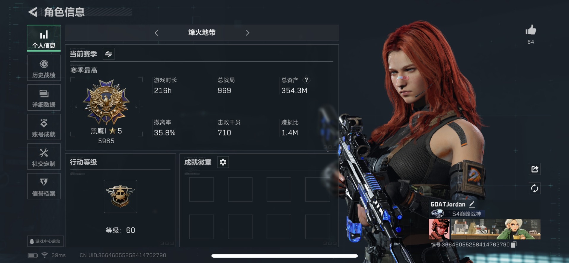 [11530009]总资产:354.3M 1近战传说 12传说枪械 哈夫币:1.466K 顶级安全箱(3×3)9.15号到期 可二次 可修改实名 优质装备:近战-北极星,顶级安全箱(3x3) 烽火地带段位:黑鹰 全面战场段位:列兵 传说武器皮肤:SMG45冲锋枪-骑士,M4A1突击步枪-阿米娅,CAR-15突击步枪-阿米娅,复合弓-黑-天际线,AWM狙击步枪-捞点薯条,QCQ171冲锋枪-北极星,腾龙突击步枪-捞点薯条,93R-捞点薯条,勇士冲锋枪-能天使-午夜邮差,725双管霰弹枪-送葬人-无题密令,K437突击步枪-北极星