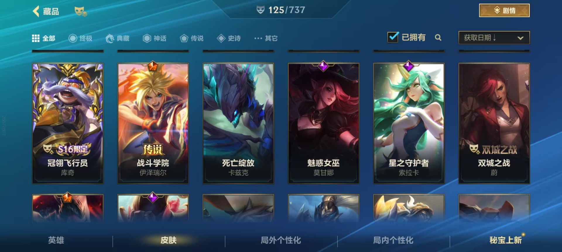 - [12105721]V7 1典藏 4传说 124英雄 187皮肤 可修改实名 优质装备:拾光映像(瑶典藏),末日机甲-孙尚香(绿蚂蚱),澜逐花归海 珍宝阁皮:女武神,玩趣恶龙 限定皮:愿照·山河定(司空震年限),鸣野蒿,神威(电光马子),高山流水,梁祝,猪悟能,大圣娶亲 史诗皮:鸭鸭历险记-刘禅,化蝶舞,星界战将,蒙犽顽岩魄,埋骨钱,蔬乡物语(鲁班七号),百相守梦-黄忠,黄金分割率,永昼,蒙恬荣光圣徽,节奏热浪,女仆咖啡,摇滚巨星,水果甜心,星夜王子,功夫厨神,幽灵船长,鬼剑武藏,暗渊魔法,地狱岩魂,缤纷独角兽,乘风破浪,月团寄思,箭羽风息,金属风暴,原初追逐者,圣诞狂欢,鹰眼统帅,暗夜贵公子,魅力维加斯,黎明之约,未来纪元-赵云
