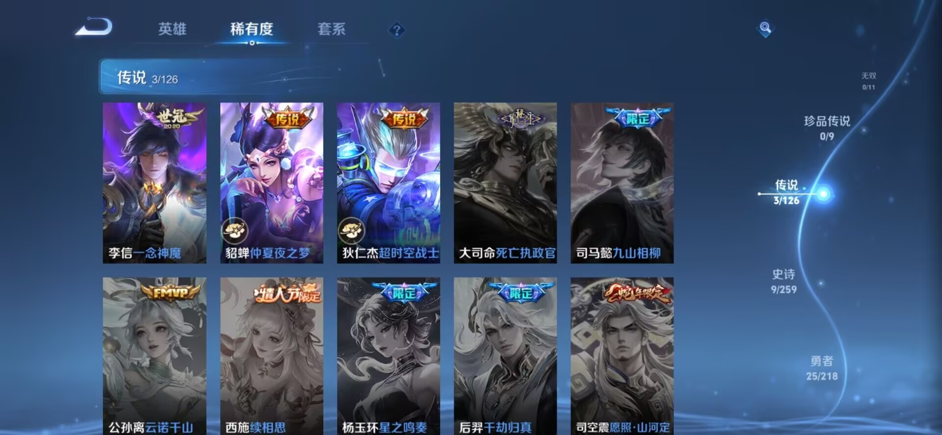 - [11529508]V9 1典藏 34传说 125英雄 344皮肤 可修改实名 优质装备:全息碎影(猴子典藏),黄金狮子座,黄金射手座,云鹰飞将(小将军),黄金白羊座,炽阳神光,一念神魔,仲夏夜之梦(大飞蛾),飞鸢探春,音你心动-周瑜,李逍遥,乞巧织情,时之恋人-刘备(电焊工),游龙清影(小青龙),淬星耀世,末日机甲-孙策,无双飞将,鲁班七号-时之奇旅,大乔-时之奇旅,澜逐花归海,琥珀纪元铠,琥珀纪元马超,金乌负日,黄金天蝎座 传说皮:乘龙·问璇玑(孙尚香年限),乘龙·铭钟鼎(赵云年限),乘龙·淬吴钩(孙策年限),典韦战鼓燎原,落雪白狼,铠冥王哈迪斯 珍宝阁皮:胡桃夹子,蔷薇恋人 限定皮:傲雪梅枪,白晶晶,时雨天司(水龙头),至美·乘鲤谣,至美·化雀舞,影龙天霄,遇见飞天,匿光决锋者,五谷丰年,辉光之辰,孙行者,大圣娶亲,玉兔公主,无尽星芒,山海·玄木吟(马可年限) 史诗皮:化蝶舞,灵蛊蚀心,怒海争锋,埋骨钱,芈月浮光幕影,琥珀纪元伽罗,决胜骁骑,上官婉儿群星魔术团,奇遇星旅,蔬乡物语(鲁班七号),曹操夜都魔契,超元猎域,乘龙·聚宝船(安琪拉年限),乘龙·忆丹青(大乔年限),百相守梦-黄忠,遇见神鹿,紫霞仙子,黄金分割率,特工魅影,千年之狐,永昼,江河有灵,匿光侦查者,鹤归松栖(赵怀真),真我赫兹(百里守约),魅语,百解令(蒙犽),高渐离燃音魔法,无限星赏官,青蛇,偶像歌手,晚萤,电玩·爆裂旋风,龙骑士(小龙虾),末日机甲-吕布,猫狗日记-孙策,猫狗日记-大乔,时之恋人-孙尚香,乱世虎臣,修罗,女仆咖啡,摇滚巨星,水果甜心,绅士熊喵,天才门将,星夜王子,心灵骇客,功夫厨神,德古拉伯爵,暗隐猎兽者,幽灵船长,鬼剑武藏,暗渊魔法,心灵战警,乐园奇幻夜,舞动绿茵,纤云弄巧,拒霜思,缤纷独角兽,乘风破浪,逐浪之夏,水晶猎龙者,曙光守护者,箭羽风息,金属风暴,圣诞狂欢,圣诞恋歌,鹰眼统帅,暗夜贵公子,魅力维加斯,赏金猎手,奇遇舞章,天秀·音浪,千筹问战,顽趣-阿古朵,无心,未来纪元-赵云