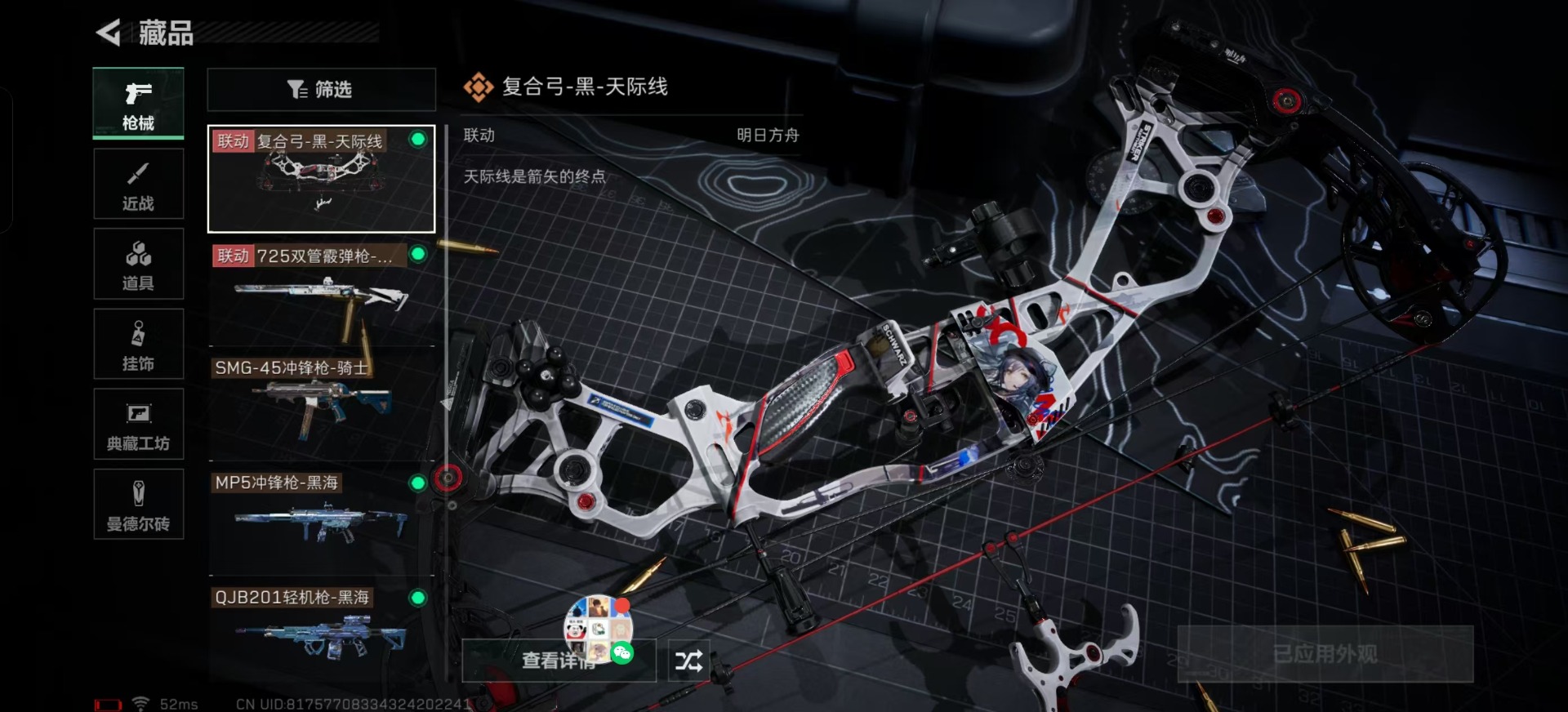 [11530287]1干员外观 1近战传说 9传说枪械 高级安全箱(2×3)9.15号到期 可二次 安全保护中 可修改实名 烽火地带段位:无段位 全面战场段位:军士长 哈夫币:606.276 传说武器皮肤:近战-黑海,SR-25射手步枪-水墨云图,SCAR-H战斗步枪-铁艺苍穹,AK-12突击步枪-夜鹰,SMG45冲锋枪-骑士,QJB201轻机枪-黑海,MP5冲锋枪-黑海,复合弓-黑-天际线,725双管霰弹枪-送葬人-无题密令 干员外观:露娜-黑·天际线