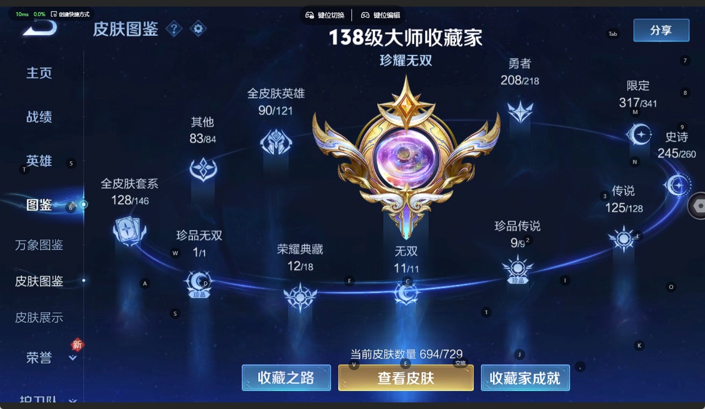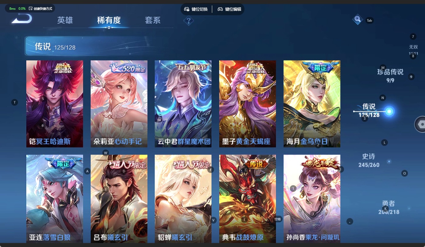 - [11657994]V10 5典藏 3无双 61传说 126英雄 510皮肤 典藏英雄武则天 可修改实名 优质装备:天鹅之梦(小乔典藏),星空梦想(太空人),倪克斯神谕(宇宙婆娘),星域神启(倪克斯贼亮),幻阙歌(貂蝉典藏),神器·明辉仪,碎月剑心(李白无双),小乔时之魔女(小乔无双),黄金狮子座,黄金射手座,冠军飞将,云鹰飞将(小将军),绛天战甲(鸡嘴战神),黄金白羊座,猫影幻舞,久胜战神,炽阳神光,一念神魔,云霓雀翎,末日机甲-孙尚香(绿蚂蚱),地狱火,仲夏夜之梦(大飞蛾),零号·赤焰,海洋之心,地狱之眼,飞鸢探春,胖达荣荣,乞巧织情,时之恋人-刘备(电焊工),游龙清影(小青龙),淬星耀世,超时空战士-狄仁杰,末日机甲-孙策,无双飞将,神器·狴犴令,神器·明辉仪,山海·炽霜斩(李信年限),山海·琳琅生(小乔年限),山海·苍雷引(电光曜子),燃星之曲,记忆之芯(机甲兔),灼幽烈阳,鲁班七号-时之奇旅,永恒水手月亮,夜礼服假面,霜月吟,澜逐花归海,艾琳觅芳踪,琥珀纪元铠,琥珀纪元马超,涂山容容 传说皮:乘龙·问璇玑(孙尚香年限),乘龙·铭钟鼎(赵云年限),乘龙·淬吴钩(孙策年限),貂蝉曦玄引,吕布曦玄引,落雪白狼 珍宝阁皮:妄想食味,优雅恋人,女武神 限定皮:逐霄战戟,鸣野蒿,至尊宝,白虎志(电光耗子),凤求凰(白切鸡),凤凰于飞,太华(伽罗年限),武陵仙君(小桃花),傲雪梅枪,寅虎·展翼(孙膑年限),时之彼端,魔法小厨娘,白晶晶,时雨天司(水龙头),神威(电光马子),飞衡(韩信年限),玄嵩(庄周年限),山海·碧波行(瑶年限),无限倾心-项羽,至美·乘鲤谣,遇见飞天,无限倾心-虞姬,齐天大圣,匿光决锋者,五谷丰年,青龙志(铠年限),冰锋战神,幽恒(沐浴露),天狼运算者,游园惊梦,梁祝,天狼狩猎者,逐梦之星,烈魂,岱宗(典韦年限),天狼溯光者,天狼征服者,奔雷神使(牛魔年限),天狼绘梦者,李小龙,朱雀志(守约年限),永曜之星,辉光之辰,如梦令-嫦娥,如梦令-后羿,霸王别姬-虞姬,奇迹圣诞,默契交锋-兰陵王,默契交锋-花木兰,孙行者,猪悟能,一生所爱,大圣娶亲,冰霜恋舞曲,云端筑梦师,乒乒小将,蜜橘之夏,热情桑巴,美猴王,匿光追影者,女儿国国王,寅虎·御盾(廉颇年限),寅虎·瑞焰(虎皮蛋子),寅虎·心曲(虎婆),寅虎·赤拳(老虎年限),玉兔公主,唐三藏,匿光启智者,时之奇旅-妲己,神器