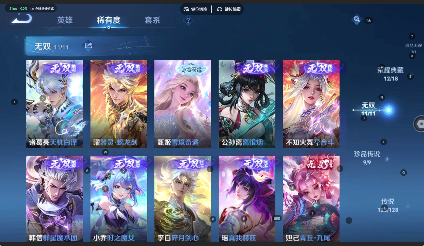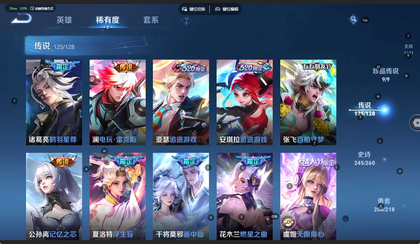 - [12025146]V7 10传说 124英雄 188皮肤 可修改实名 优质装备:云鹰飞将(小将军),绛天战甲(鸡嘴战神),一念神魔,时之恋人-刘备(电焊工),超时空战士-狄仁杰,黄金天蝎座 传说皮:典韦战鼓燎原 珍宝阁皮:妄想食味,玩趣恶龙 限定皮:愿照·九州拓(澜年限),愿照·山河定(司空震年限),鸣野蒿,五谷丰年,李小龙,梦圆繁星,山海·玄木吟(马可年限) 史诗皮:龙之律动,怒海争锋,炽弈燎原,蒙犽顽岩魄,超元猎域,百相守梦-百里守约,紫霞仙子,黄金分割率,特工魅影,江河有灵,百解令(蒙犽),冰冠公主,电玩·爆裂旋风,猫狗日记-孙策,乱世虎臣,修罗,水果甜心,天才门将,功夫厨神,暗隐猎兽者,幽灵船长,鬼剑武藏,暗渊魔法,心灵战警,天秀·启明,地狱岩魂,纤云弄巧,缤纷独角兽,乘风破浪,逐浪之夏,水晶猎龙者,金属风暴,圣诞狂欢,鹰眼统帅,暗夜贵公子,魅力维加斯