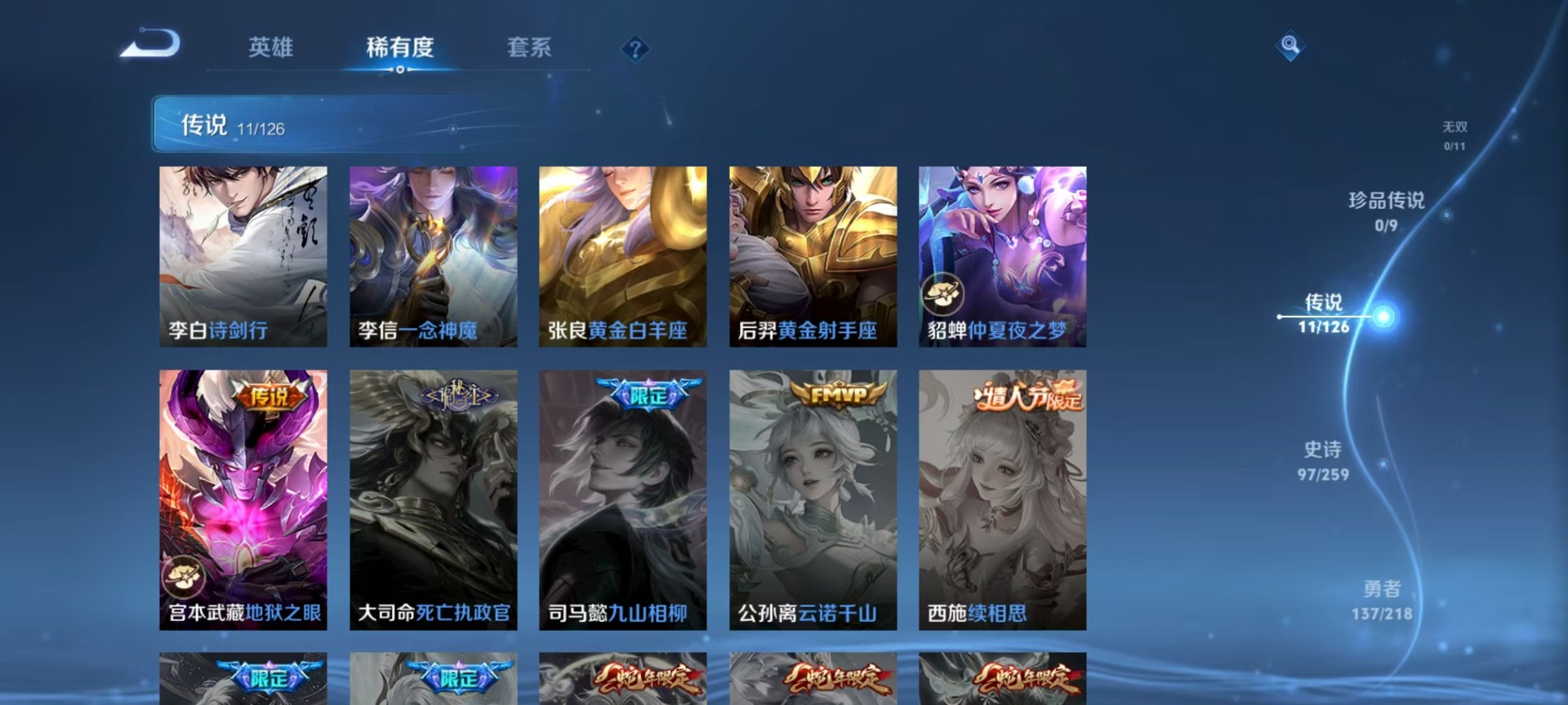 - [12398234]【商品标题】:安卓Q-V8-最强王者段位-126英雄-263皮肤-1典藏-0珍品无双-0无双-0珍品传说-13传说-80史诗 【英雄全皮】:鬼谷子全皮,李信全皮,蒙恬全皮,戈娅全皮 【荣耀典藏】:诸葛亮星域神启 【传说皮肤】:桑启鸣野蒿,李信山海炽霜斩,吕布怒海麟威,孙尚香异界灵契,赵云淬星耀世,铠绛天战甲,虞姬启明星使,曜云鹰飞将,李信一念神魔,貂蝉猫影幻舞,干将莫邪久胜战神,诸葛亮武陵仙君,孙悟空地狱火 【限定皮肤】:蒙犽顽岩魄,姜子牙天穹之誓,狄仁杰阴阳师,赵云皇家上将,墨子神迹守卫,嬴政优雅恋人,孙尚香异界灵契,鲁班七号乒乒小将,钟无艳超时空战士,扁鹊奇幻香踪,芈月幻夜卜梦,元歌无心,甄姬落雪兰心,马可波罗暗影游猎,马可波罗山海玄木吟,狄仁杰魔术师,狄仁杰万华元夜,达摩沙漠行僧,项羽海滩派对,老夫子醍醐杖,老夫子航海奇遇记,兰陵王金庭之子,花木兰青春决赛季,孙悟空至尊宝,孙悟空孙行者,后羿圣弓游侠,刘备百相守梦,李元芳云中旅人,虞姬启明星使,钟馗驱傩正仪,杨戬潮玩骑兵,干将莫邪真爱魔法,鬼谷子原初探秘者,鬼谷子五谷丰年,诸葛亮武陵仙君,黄忠火炮绅士,苏烈千军破阵,百里玄策原初追逐者,沈梦溪大漠名商,裴擒虎李小龙,裴擒虎擒涛扼浪,云中君纤云弄巧,李信山海炽霜斩,猪八戒西部大镖客,上官婉儿梁祝,嫦娥拒霜思,嫦娥暖冬兔眠,西施玲珑珍味,鲁班大师探海日志,桑启海盐诗旅,暃星界游侠,戈娅驭风魔法,艾琳女武神,艾琳流音漫舞,司空震地狱燃心,阿古朵江河有灵,张良古海寻踪,蒙恬荣光圣徽,鬼谷子天穹祈灯,沈梦溪龙舞盛年,刘邦剑破天穹,周瑜熔金海岸 【年限皮肤】:马超神威,马可波罗山海玄木吟,李信山海炽霜斩 【赛季限定】:狄仁杰万华元夜,达摩沙漠行僧,老夫子醍醐杖,兰陵王金庭之子,张良古海寻踪,李元芳云中旅人,钟馗驱傩正仪,鬼谷子原初探秘者,苏烈千军破阵,百里玄策原初追逐者,沈梦溪大漠名商,裴擒虎擒涛扼浪,鲁班大师探海日志,桑启海盐诗旅,鬼谷子天穹祈灯,蒙恬荣光圣徽,刘邦剑破天穹,姜子牙天穹之誓 【战令限定】:墨子神迹守卫,钟无艳超时空战士,扁鹊奇幻香踪,芈月幻夜卜梦,甄姬落雪兰心,马可波罗暗影游猎,老夫子航海奇遇记,艾琳流音漫舞,后羿圣弓游侠,杨戬潮玩骑兵,干将莫邪真爱魔法,黄忠火炮绅士,猪八戒西部大镖客,嫦娥暖冬兔眠,西施玲珑珍味,司空震地狱燃心,暃星界游侠,戈娅驭风魔法