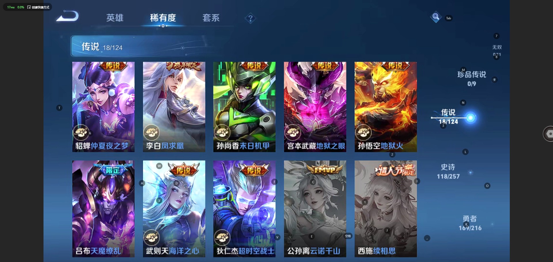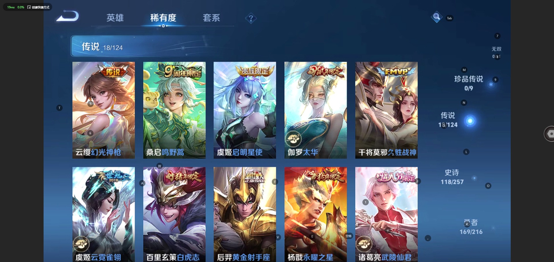 - PX_2103143-贵族7/皮肤306/传说20/史诗86/英雄124/瑶大耳狗之梦/暃朽木白哉/宫本武藏黑崎一护/蔷薇恋人/玩趣恶龙/特工战影/地狱之眼/云鹰飞将/零号赤焰/启明星使/炽阳神光/音你心动女/挚爱之约/无双飞将/枫霜尽/诗剑行/山海炽霜斩/山海苍雷引/齐天大圣/鹤羽星尊/桑启鸣野蒿/云缨幻光神枪/虞姬愿照岁时盈/澜愿照九州拓/妲己愿照众生和/西施续相思/姜子牙天穹之誓/李白谪仙醉