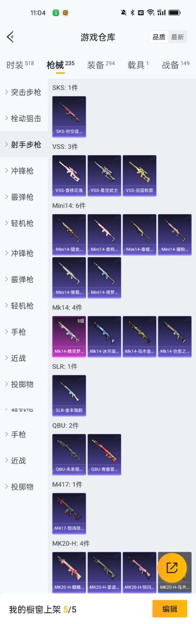 - PX_2077285- 安卓手Q-10王牌印记-18粉装-11特效枪-1载具-62985热力值-134套装-176枪皮-2卓越印记-1传奇印记 【18粉装】,小叽联名款,缤纷油彩,蝶舞迷情,白勺歌姬,极致幻想,镜光幻境,闲梦青缨,焦糖拿铁,小可学妹,宙之时溯,寒光使者,心之恋语,萨利娅,冰川粉黛,冰川红玫,炙焰红王,暗夜鎏金,心之回忆 【11特效枪】AKM-绿萝繁花-5级 SCAR-L-纯梦嫁纱-