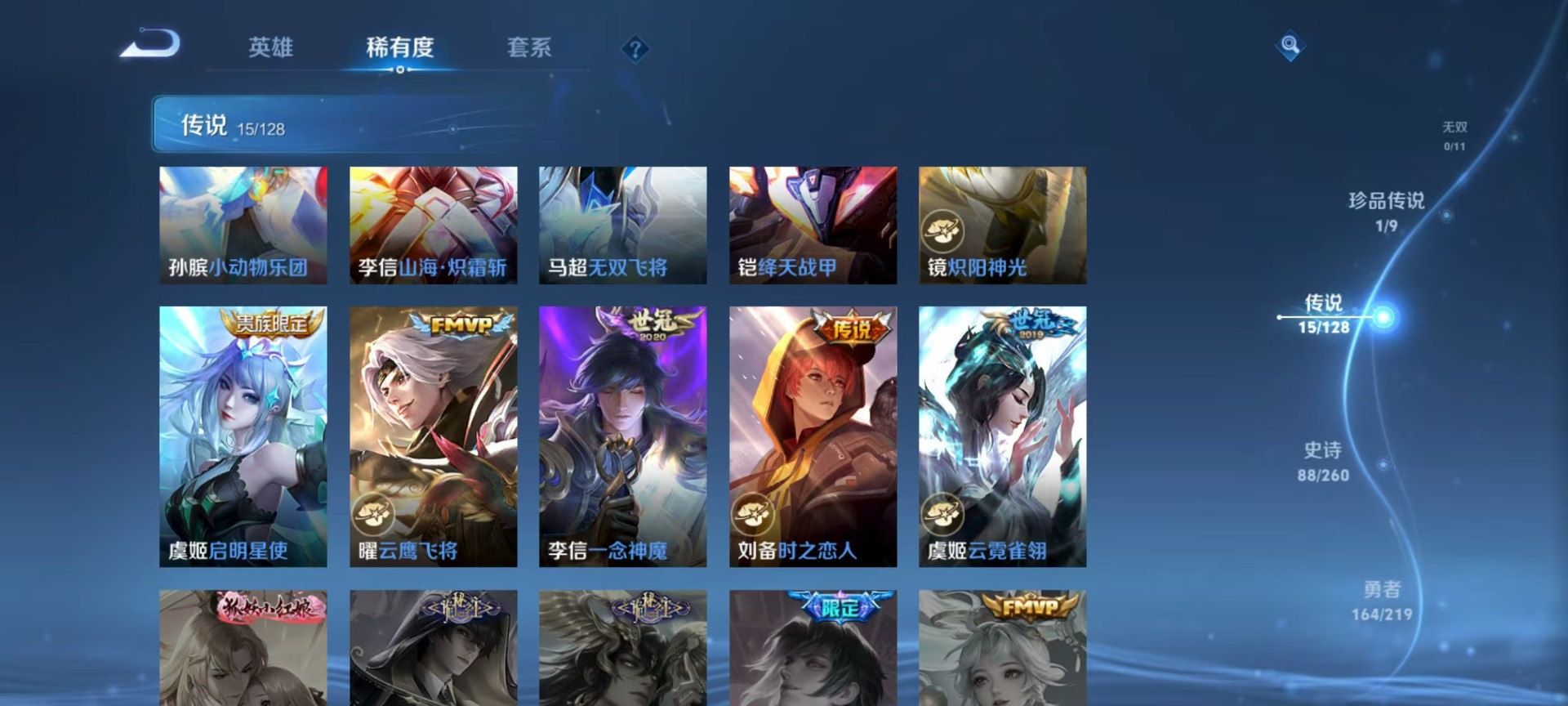 刘备时之恋人,铠绛天战甲,孙膑小动物乐团,李信一念神魔,孙策乘龙·淬吴钩,吕布曦玄引,镜炽阳神光,朵莉亚心动手记,曜云鹰飞将,马超无双飞将,虞姬云霓雀翎