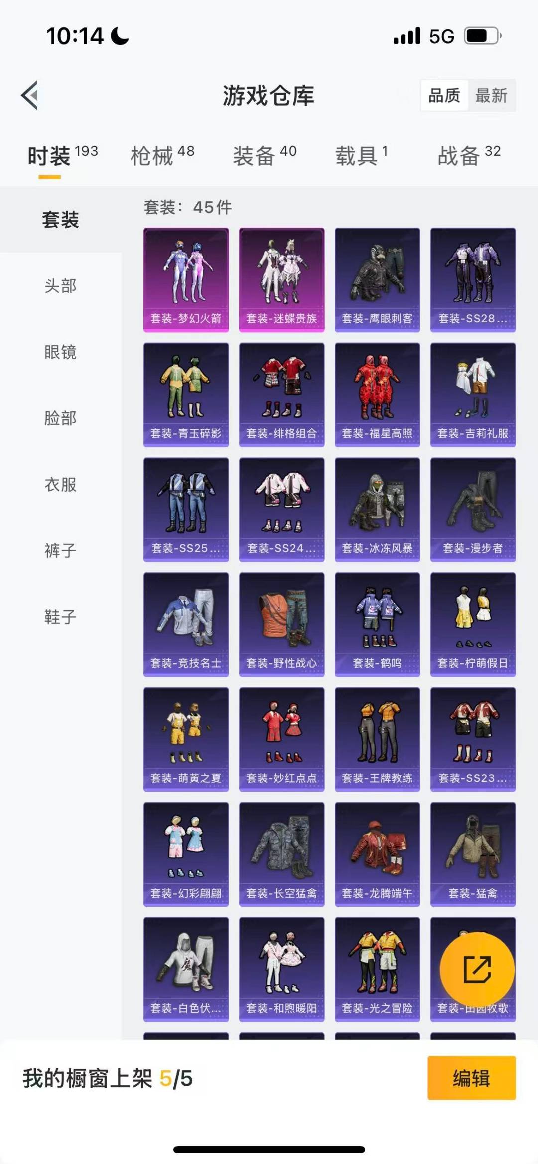 - [11578824]1粉装 2特效枪 7印记 可二次 可修改实名 身法装备:Mark.06(新蓝螳螂) 热门装扮:冷漠罗丽 稀有枪皮:Kar98K-巳巳如意,MK14-甜梦熊击 五级特效枪:五级MK14-甜梦熊击,五级Kar98K-巳巳如意 紫色装扮:娇憨猪猪,萌趣咩咩,SS21特训,SS20特训,SS33特训套装,旭日情侣,顶瓜瓜,彩虹兔,时希公主,雪绒豹,云朵鹅,SS22特训,SS23特训,SS30特训套装,SS31特训套装,SS19特训,SS14特训,SS18特训,SS17特训,遗落祭司,SS29特训,Mark.06(新蓝螳螂),雏菊兔兔,萝兰蝴蝶,纯真浪花,热情海星,SS28特训,创世·追猎,巳巳如意,星途旅人,青团波波,糖糖葫芦,棉花软糖,竞技名士,都市丽猫,街头风暴,SS25特训,SS24特训(SS24特训套装),SS27特训,粉红小猪,SS26特训,耀粉歌者,蓝冰羽,紫幽梦,SS32特训服(SS32特训套装) 优质战备:公主华盖飞行器,初号机 觉醒Ver.降落伞,御兔特攻飞行器,幻星舰长降落伞,星途旅人降落伞