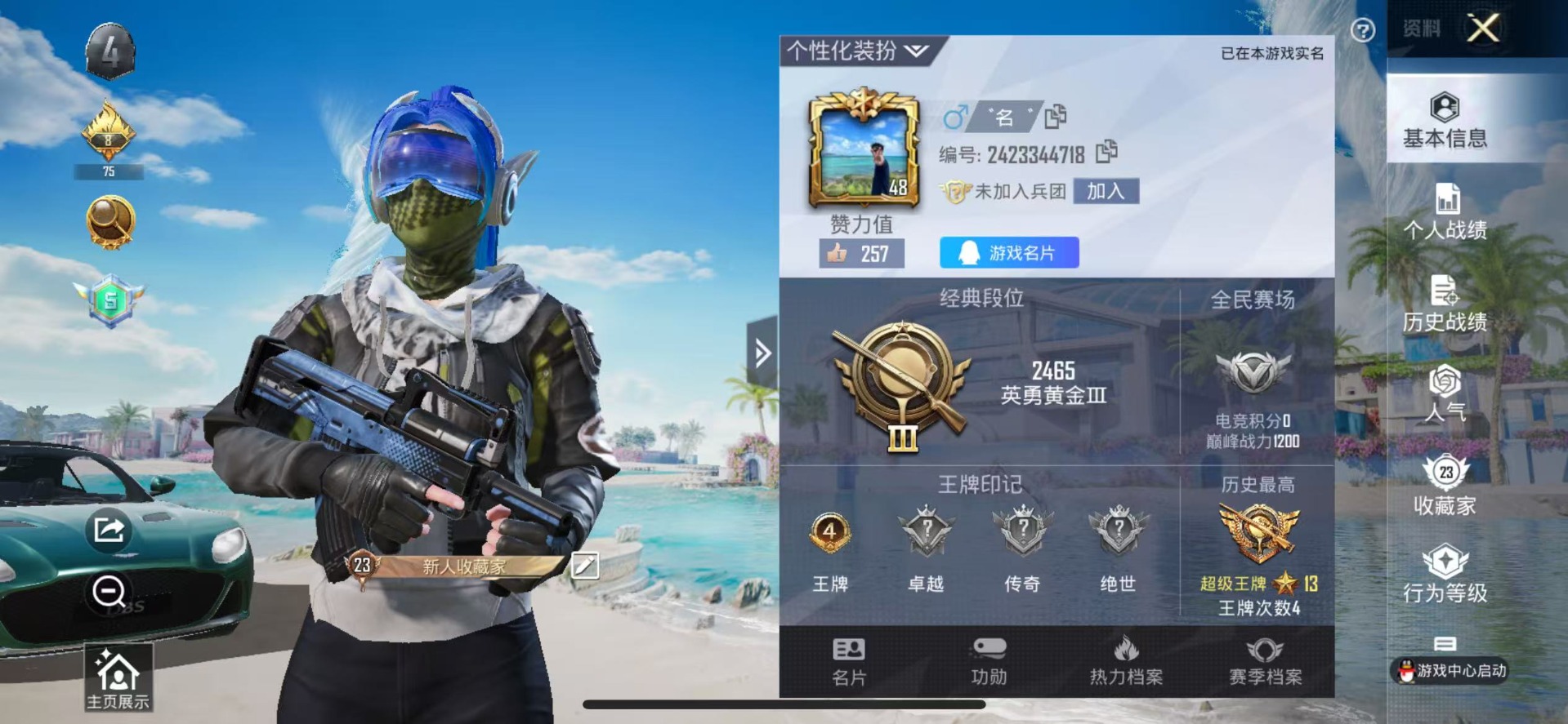 - [11468209]总资产:80.5M 3干员外观 1近战传说 20传说枪械 哈夫币:366.735K 顶级安全箱(3×3)9.15号到期 可二次 可修改实名 优质装备:近战-北极星,K416突击步枪-命运(典藏),顶级安全箱(3x3) 烽火地带段位:黑鹰 全面战场段位:无段位 传说武器皮肤:AK-12突击步枪-夜鹰,SMG45冲锋枪-骑士,93R-捞点薯条,AWM狙击步枪-捞点薯条,腾龙突击步枪-捞点薯条,AK-12突击步枪-特斯拉线圈,CAR-15突击步枪-阿米娅,SR-3M紧凑突击步枪-特斯拉线圈,UZI冲锋枪-特斯拉线圈,勇士冲锋枪-能天使-午夜邮差,Vector冲锋枪-能天使-午夜邮差,复合弓-黑-天际线,M4A1突击步枪-阿米娅,M14射手步枪-工业审判,725双管霰弹枪-送葬人-无题密令,K437突击步枪-北极星,QCQ171冲锋枪-北极星,M4A1突击步枪-蚀金玫瑰 史诗武器皮肤:AUG突击步枪-蝮蛇,M700狙击步枪-蝮蛇,PKM通用机枪-蝮蛇,Ash-12战斗步枪-守夜人,M16A4突击步枪-竞赛选手,PKM通用机枪-守夜人,AS Val突击步枪-尖端治疗,M700狙击步枪-守夜人,SR-25射手步枪-尖端治疗,PKM通用机枪-荒野求生,MP5冲锋枪-深海恐惧,勇士冲锋枪-深海恐惧,SG552突击步枪-深海恐惧,AKM突击步枪-林中猎手,SR-3M紧凑突击步枪-荒野求生,M1014霰弹枪-林中猎手,SV-98狙击步枪-林中猎手,PTR-32突击步枪-英雄,SVD狙击步枪-荒野求生,M250通用机枪-囚徒,SV-98狙击步枪-囚徒,SCAR-H战斗步枪-囚徒,腾龙突击步枪-无垢,MP7冲锋枪-无垢,PSG-1射手步枪-无垢,QBZ95-1突击步枪-曙光,Vector冲锋枪-阿萨拉文明,SVD狙击步枪-阿萨拉工艺,M700狙击步枪-竞技风 干员外观:红狼-蚀金玫瑰,露娜-黑·天际线,蛊-能天使·午夜邮差