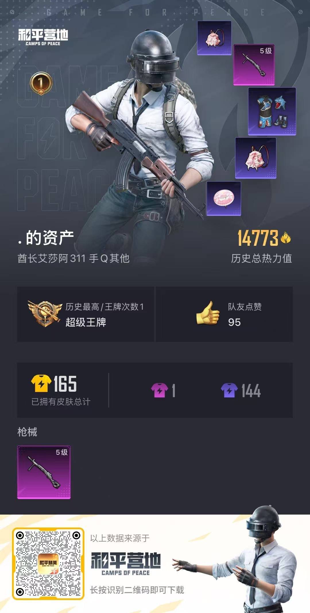- PX_2106916- 苹果手Q-13王牌印记-4粉装-10特效枪-2载具-74624热力值-200套装-203枪皮-2卓越印记-0传奇印记 【4粉装】,宝贝奶油派,新星烈龙,甜蜜誓约,数码大师 【10特效枪】AKM-炫紫旋律-5级 SCAR-L-锦绣绵绵-5级 M416-五爪金龙-4级 M416-电玩时刻-5级 M416-心之恋语-7级 M762-甜蜜誓约-5级 Kar98K-巳巳如意-4级 K