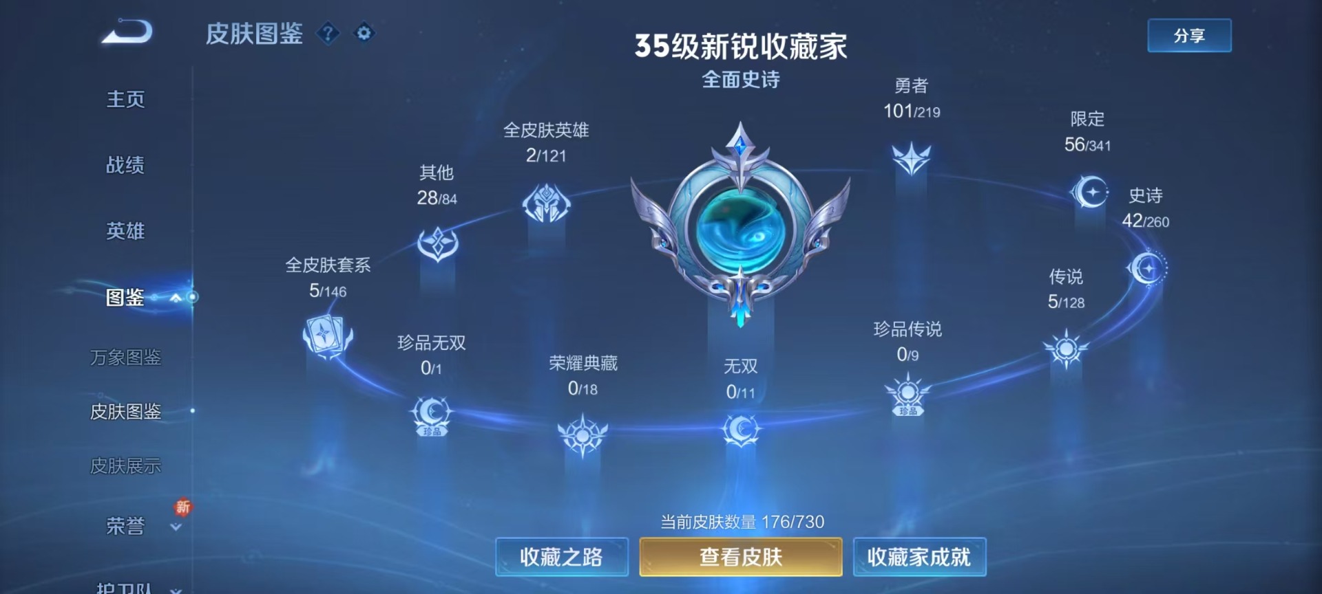 - PX_2108010-Q/非凡王者/355皮肤/125英雄/1典藏/0珍品无双/1无双/2珍品传说/26传说/105史诗/9稀有英雄 【2 珍品传说】黑崎一护 宫本武藏,怪盗基德 马可波罗, 【1 典藏皮肤】九霄神辉 花木兰, 【1 无双皮肤】碎月剑心 李白, 【26 传说皮肤】胖达荣荣 梦奇,启明星使 虞姬,逐花归海 澜,电玩·雷克斯 澜,无双飞将 马超,云鹰飞将 曜,夜礼服假面 狄仁杰,游龙清