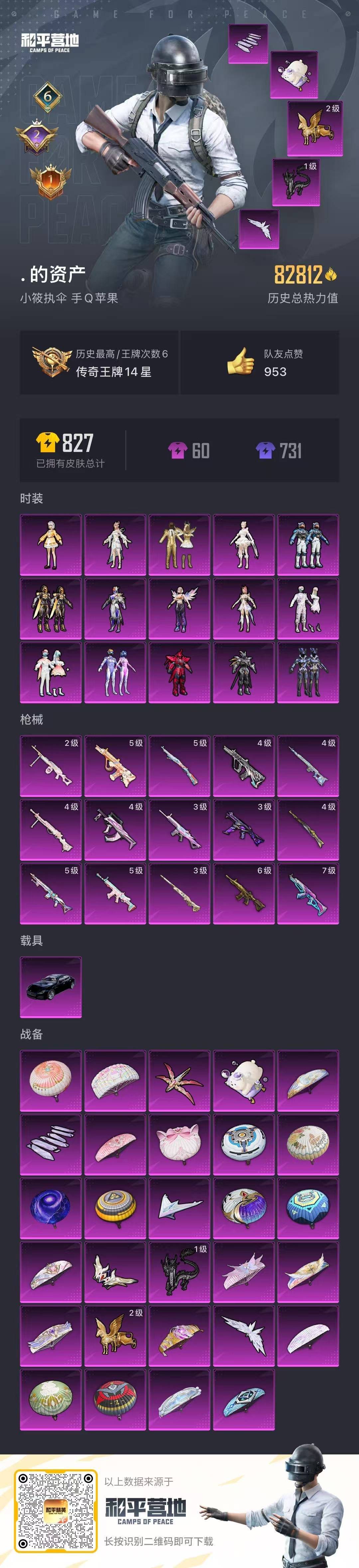 [11546414]15粉装 15特效枪 1载具 6印记 可二次 可修改实名 身法装备:暗影哥特(红眼罩) 优质装备:玛莎拉蒂Quattroporte(夜幕蓝),M416五爪金龙,奇异狩猎者,梦幻火箭(新101)(新火箭少女101粉色套装),金属狂野,苍蓝魅影,AKM梦之光华,AUG超新星,SCAR-L-锦绣绵绵,M24镜域双华,PKM江南烟雨,七级AKM-梦之光华,Mk14精灵梦叶罗丽,Kar98K创世·救赎,UMP45-宇宙意志,SCAR-L-时空协奏,未来领航者,DP-28-千金淑猫,千金淑猫,GROZA-镜光银凌,SVD-月影灵韵,月影灵韵,AUG-暖羊咩咩,Kar98K-巳巳如意 热门装扮:炙焰赤龙,飓风飞鹰,旋转彩虹,呆萌星弥,镜光幻境,圣堂之誓,电波星,星空武士,创世·救赎,激萌罗小黑,浪漫波比 六级特效枪:六级M416-五爪金龙 五级特效枪:五级Mk14-精灵梦叶罗丽,五级Kar98K-巳巳如意,五级AUG-暖羊咩咩,五级SCAR-L-锦绣绵绵 四级特效枪:四级DP-28-千金淑猫,四级GROZA-镜光银凌,四级SVD-月影灵韵,四级Kar98K-创世·救赎,四级AUG-超新星 三级特效枪:三级SCAR-L-时空协奏,三级UMP45-宇宙意志,三级M24-镜域双华 二级特效枪:二级PKM-江南烟雨 紫色装扮:田园牧歌,轻风白浪,SS22特训,SS23特训,SS21特训,SS31特训套装,六六大吉,冷焰舞者,千禧之恋,SS30特训套装,SS20特训,梦起落英,青春冒险家,潮流游乐家,SS15特训,暗夜傀儡,梨园星光,暴风机械师,SS16特训,星河入梦,星梦畅游,治愈之星,科技之星,SS14特训,萌趣颜团子,微雨春柳,暖风夏荷,飞驰魅影,音速流光,SS19特训,薰款战斗服,瑞龙福将,团圆交子,醒狮腾龙,SS17特训,SS18特训,长空猛禽,霓虹街区,缤纷果语,街头潮人,骑行爱好者,魅力单车,黄色名流,龟仙人,童心宝龙,冰河战士,龙魂突击队,蝶变,香桃花海,沙漠毒蛇,活力之心,夏日倾情,夏日音浪,战地菁英,绮丽涂鸦,白色伏地魔,福星高照,空岛之星,空投萌叽,竞技达人朋克,炫蓝之夏,牛气满满,狂沙舞者,粉日山川,小熊娃娃,雏菊兔兔,萝兰蝴蝶,SS29特训,湖畔霞光,星途旅人,白光莹,纯真浪花,热情海星,曼妙人鱼,SS28特训,迎夏光舞,听雨铃兰,火种守护者(套装-火种守