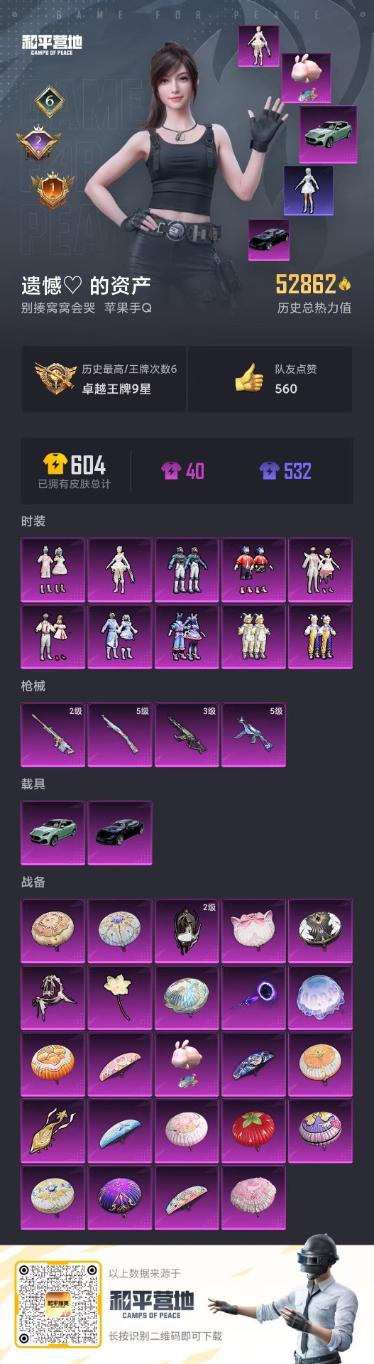 [11546424]10粉装 4特效枪 2载具 6印记 可二次 可修改实名 优质装备:玛莎拉蒂Grecale(薄荷绿),玛莎拉蒂Quattroporte(夜幕蓝),UMP45量子极限,未来领航者,AKM-幽焰骑士,千金淑猫,AMR-智耀战神,Kar98K-巳巳如意 时装数:319 枪械数:147 战备数:2 热门装扮:精灵娃娃,酣梦娃娃,绚丽摇曳,霁雪冰心,冰川粉黛,冰川红玫,音爆索尼克,蜜语绒猫,星兔领航员 载具:僚机-萌兔起飞 五级特效枪:五级UMP45-量子极限,五级Kar98K-巳巳如意 三级特效枪:三级AKM-幽焰骑士 二级特效枪:二级AMR-智耀战神 紫色装扮:粉日山川,小熊娃娃,雏菊兔兔,萝兰蝴蝶,SS29特训,湖畔霞光,星途旅人,SS28特训,听雨铃兰,鱼渊荷华,玉兔迎春,燕燕于飞,都市丽猫,青团波波,糖糖葫芦,棉花软糖,竞技名士,摩登魅猫,街头风暴,裁决天象,黑曜寓言,甜梦熊熊,元气发射,SS27特训,晶灵使者,春日漫步,蓝冰羽,紫幽梦,SS32特训服(SS32特训套装),白糯汤圆,晨曦轻云,糖霜甜心,恋语绒绒 优质战备:绮梦流光降落伞,曦光华影飞行器,深渊漩涡飞行器,金丰海韵降落伞,橘柚倾心降落伞,千金淑猫降落伞,信仰神谕降落伞,信仰神谕飞行器,牡丹亭·游园飞行器,智耀战神降落伞,冰川粉黛降落伞,甜蜜草莓降落伞,海螺星光降落伞,全功率超战飞行器,启明星降落伞,圣光天使降落伞,飒粉甜心降落伞,梦幻火箭降落伞,甜蜜誓约降落伞,甜心娃娃降落伞,暗星紫秘降落伞 二级优质战备:二级信仰神谕飞行器
