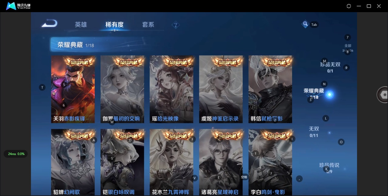 - PX_2104983-Q/永恒钻石/299皮肤/125英雄/1典藏/0珍品无双/0无双/0珍品传说/21传说/96史诗/9稀有英雄 【1 典藏皮肤】无限飓风号 夏侯惇, 【21 传说皮肤】启明星使 虞姬,白虎志 百里玄策,李逍遥 曜,零号·赤焰 孙悟空,地狱火 孙悟空,云鹰飞将 曜,游龙清影 西施,凤求凰 李白,猫影幻舞 貂蝉,仲夏夜之梦 貂蝉,地狱之眼 宫本武藏,时雨天司 诸葛亮,炽阳神光 镜