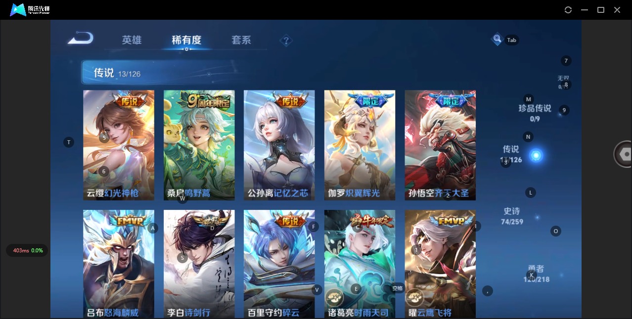 - PX_2093836-贵族6/皮肤103/传说5/史诗23/英雄109/云鹰飞将/无双飞将/逐花归海/澜愿照九州拓/公孙离云诺千山/狰/狄仁杰阴阳师/赵云皇家上将/赤莲之焰/元歌无心/朔风刀/烛龙/穷奇/暗影游猎/狄仁杰魔术师/万华元夜/项羽海滩派对/醍醐杖/演武夺筹/兰陵王驯魔猎人/大圣娶亲/驱傩正仪/单词大作战/原初探秘者/混沌棋/疑决卦/李小龙/御狮/云中君纤云弄巧/御銮/猪八戒西部大镖客/