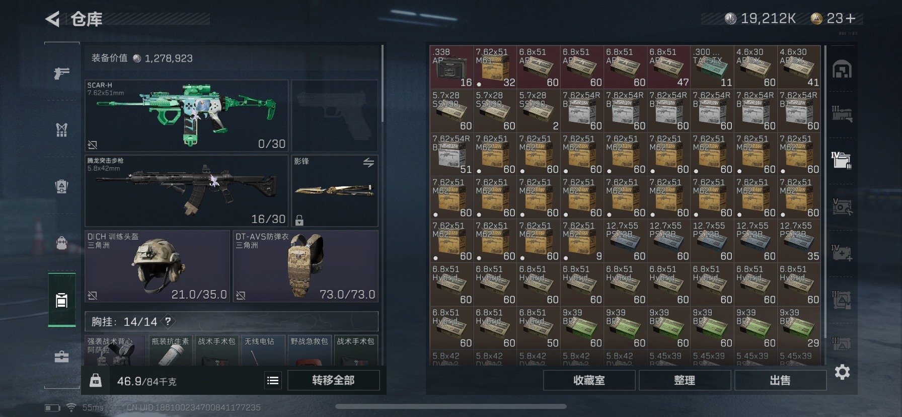 [11546635]总资产:253.7 1干员外观 1近战传说 12传说枪械 高级安全箱(9.17到期) 可二次 可修改实名 优质装备:近战-影锋,SCAR-H战斗步枪-电玩高手 烽火地带段位:铂金 全面战场段位:校官 哈夫币:19.212 传说武器皮肤:SR-25射手步枪-水墨云图,SCAR-H战斗步枪-水墨云图,SCAR-H战斗步枪-铁艺苍穹,AK-12突击步枪-夜鹰,SMG45冲锋枪-骑士,复合弓-黑-天际线,CAR-15突击步枪-阿米娅,725双管霰弹枪-送葬人-无题密令,CAR-15突击步枪-黑鹰坠落,勇士冲锋枪-能天使-午夜邮差 史诗武器皮肤:QBZ95-1突击步枪-ACE,M4A1突击步枪-特勤执行,AUG突击步枪-特勤执行,Vector冲锋枪-红色彗星,PTR-32战斗步枪-ACE,M700狙击步枪-蝮蛇,PKM通用机枪-蝮蛇,SR-25射手步枪-尖端治疗,PKM通用机枪-荒野求生,AS Val突击步枪-尖端治疗,M700狙击步枪-守夜人,SG552突击步枪-尖端治疗,MP5冲锋枪-深海恐惧,SR-3M紧凑突击步枪-荒野求生,SG552突击步枪-深海恐惧,AKM突击步枪-林中猎手,.357左轮-幸运时刻,SVD狙击步枪-暗夜猎手,SVD狙击步枪-荒野求生,M1014霰弹枪-林中猎手,PSG-1射手步枪-无垢,M250通用机枪-囚徒,SV-98狙击步枪-囚徒,SCAR-H战斗步枪-囚徒,MP7冲锋枪-无垢,QBZ95-1突击步枪-曙光,Vector冲锋枪-阿萨拉文明,SVD狙击步枪-阿萨拉工艺,M700狙击步枪-竞技风,AUG突击步枪-战术迷彩 干员外观:骇爪-水墨云图