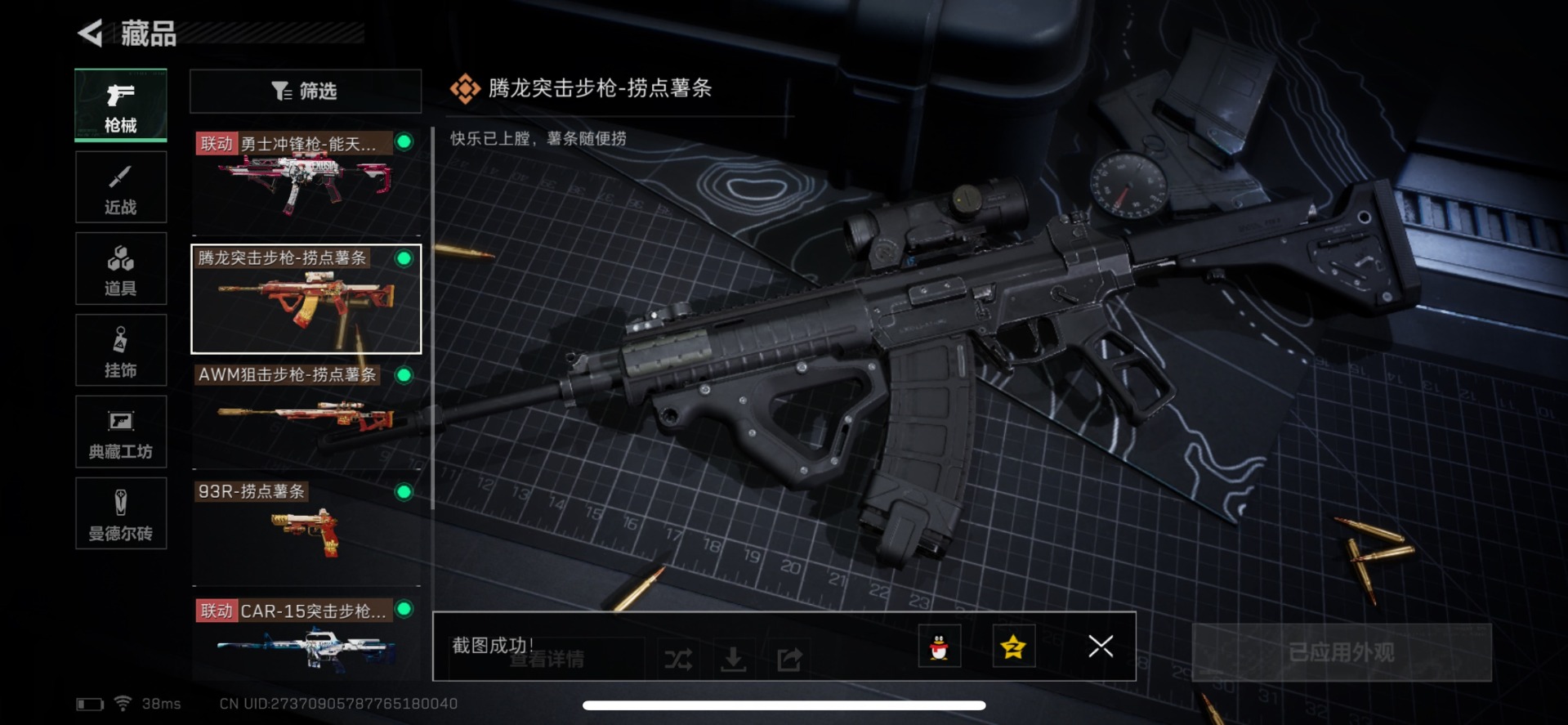 - PX_2102121- 可二次 苹果手Q-18王牌印记-6粉装-9特效枪-1载具-86337热力值-224套装-257枪皮-1卓越印记-0传奇印记, 【6粉装】,新星烈龙,蝶舞迷情,碧影闪光,王牌四分卫,海盐物语,绚金战神, 【9特效枪】,AKM-梦之光华-7级,SCAR-L-锦绣绵绵-5级,M416-心之恋语-6级,GROZA-镜光银凌-5级,AUG-暖羊咩咩-5级,Kar98K-巳巳如意-5级
