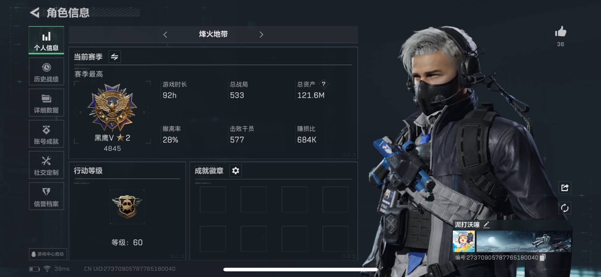 [11546764]总资产:121.6M 7传说枪械 哈夫币:23.466K 高级安全箱(2×3)9.15号到期 可二次 可修改实名 烽火地带段位:黑鹰 全面战场段位:列兵 传说武器皮肤:CAR-15突击步枪-阿米娅,复合弓-黑-天际线,AWM狙击步枪-捞点薯条,腾龙突击步枪-捞点薯条,93R-捞点薯条,勇士冲锋枪-能天使-午夜邮差,725双管霰弹枪-送葬人-无题密令