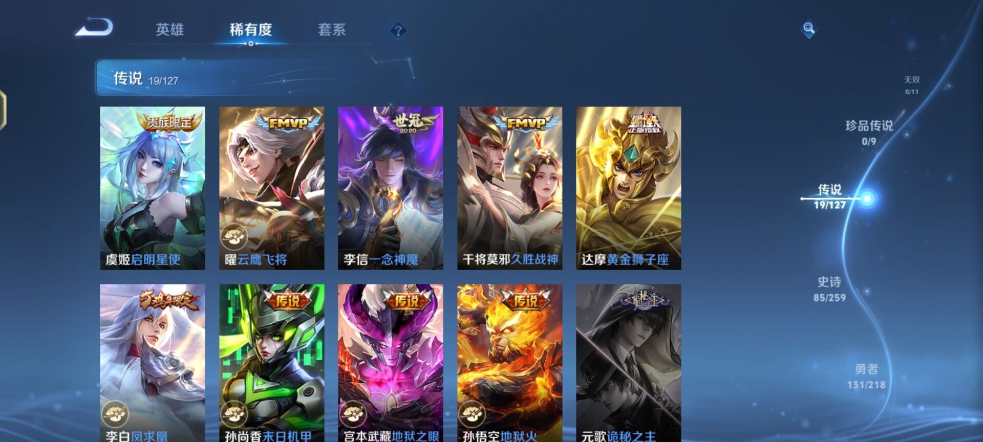 - PX_1929031-【206皮17传说天魔缭乱 白虎志 九州拓 逐花归海】:安卓Q-V7-最强王者段位-124英雄-206皮肤-0典藏-0无双-0珍品传说-17传说-64史诗 【内测皮肤】:嬴政优雅恋人,狂铁特工战影 【传说皮肤】:吕布天魔缭乱,宫本武藏地狱之眼,梦奇胖达荣荣,百里玄策白虎志,曜云鹰飞将,诸葛亮时雨天司,马超无双飞将,李信山海炽霜斩,孙悟空齐天大圣,露娜霜月吟,澜逐花归海,孙策乘