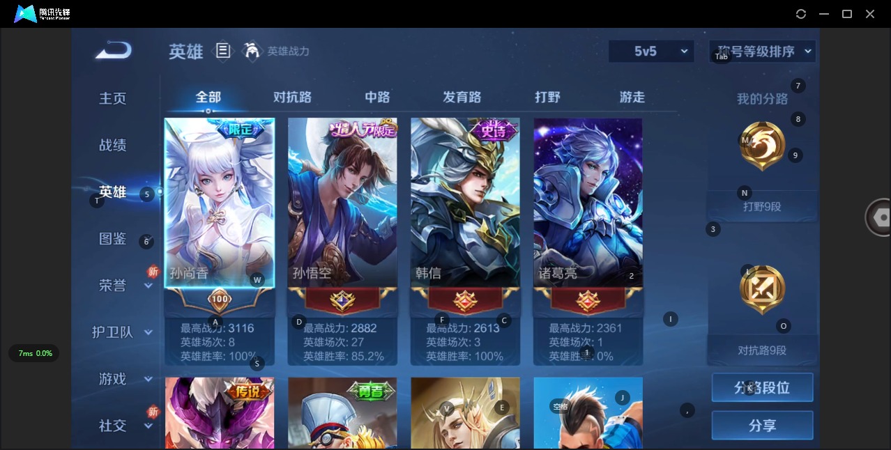- [11599306]V5 4传说 123英雄 187皮肤 可修改实名 传说皮:地狱之眼,末日机甲-孙尚香(绿蚂蚱) 珍宝阁皮:胡桃夹子,女武神,玩趣恶龙 限定皮:愿照·岁时盈(虞姬年限),鸣野蒿,五谷丰年,梁祝,李小龙,猪悟能 史诗皮:星界战将,化蝶舞,紫霞仙子,黄金分割率,特工魅影,无限星赏官,末日机甲-吕布,摇滚巨星,水果甜心,天才门将,功夫厨神,暗隐猎兽者,幽灵船长,鬼剑武藏,心灵战警,乘风破浪,逐浪之夏,水晶猎龙者,曙光守护者,箭羽风息,金属风暴,原初追逐者,圣诞恋歌,鹰眼统帅,王者之锤,未来纪元-赵云