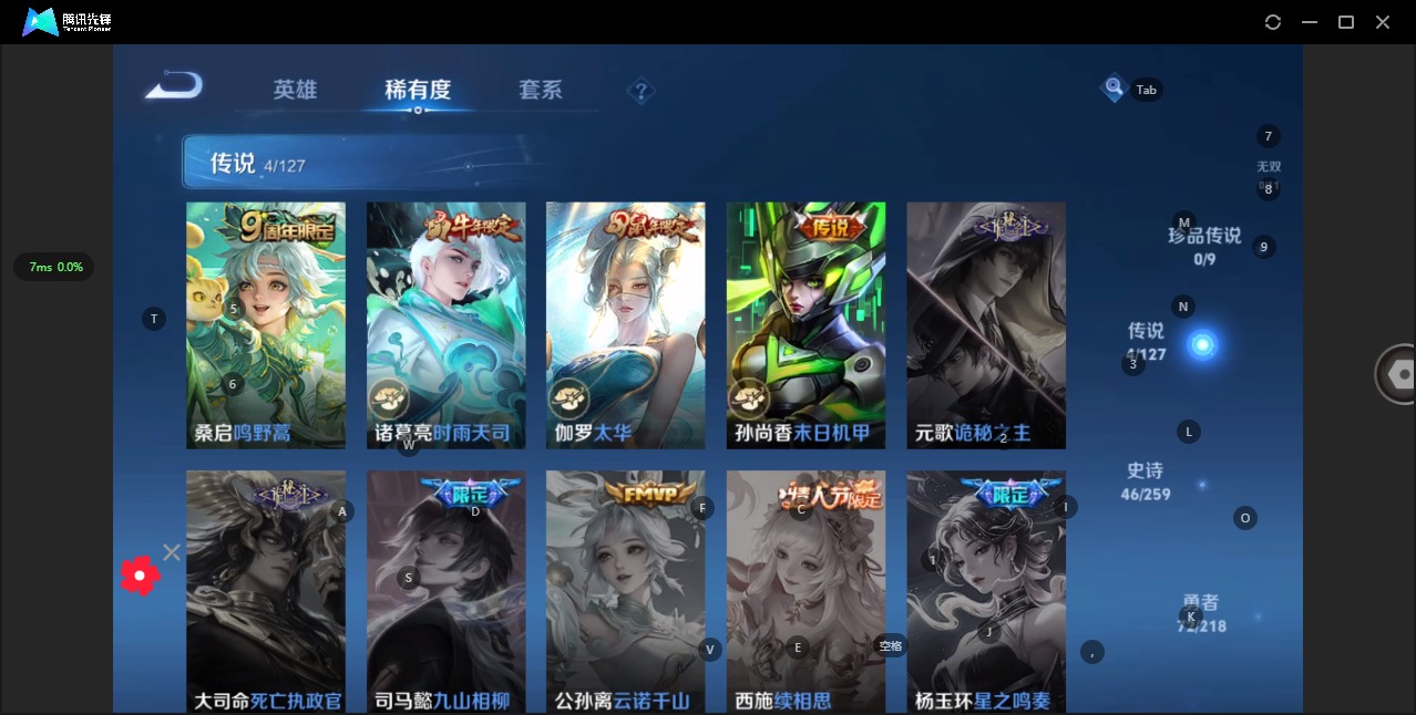 - [11628854]V8 2典藏 26传说 124英雄 335皮肤 可修改实名 女号 优质装备:鸣剑·曳影,全息碎影(猴子典藏),黄金狮子座,冠军飞将,云鹰飞将(小将军),炽阳神光,一念神魔,末日机甲-孙尚香(绿蚂蚱),地狱火,仲夏夜之梦(大飞蛾),地狱之眼,李逍遥,时之恋人-刘备(电焊工),游龙清影(小青龙),淬星耀世,超时空战士-狄仁杰,无双飞将,山海·炽霜斩(李信年限),燃星之曲,澜逐花归海 珍宝阁皮:优雅恋人,蔷薇恋人,女武神 限定皮:至尊宝,白虎志(电光耗子),凤求凰(白切鸡),梅西,傲雪梅枪,前尘镜,时雨天司(水龙头),神威(电光马子),飞衡(韩信年限),遇见飞天,高山流水,五谷丰年,游园惊梦,梁祝,李小龙,逐梦之影,朱雀志(守约年限),纯白花嫁,孙行者,猪悟能,大圣娶亲,天魔缭乱,寅虎·赤拳(老虎年限),玉兔公主,启示之音,山海·玄木吟(马可年限) 史诗皮:紫霞仙子,苍穹之光,电玩小子(小书包),白龙吟,黄金分割率,特工魅影,千年之狐,江河有灵,魅语,百解令(蒙犽),蒙恬荣光圣徽,冰冠公主,偶像歌手,晚萤,电玩·爆裂旋风,龙骑士(小龙虾),末日机甲-吕布,猫狗日记-孙策,猫狗日记-大乔,乱世虎臣,节奏热浪,修罗,女仆咖啡,摇滚巨星,水果甜心,绅士熊喵,天才门将,星夜王子,心灵骇客,功夫厨神,德古拉伯爵,暗隐猎兽者,幽灵船长,鬼剑武藏,暗渊魔法,心灵战警,舞动绿茵,地狱岩魂,诗语江南,纤云弄巧,繁星吟游(呼啦呼啦),拒霜思,缤纷独角兽,乘风破浪,逐浪之夏,龙鼓争鸣,水晶猎龙者,曙光守护者,热力回旋,箭羽风息,金属风暴,原初追逐者,圣诞狂欢,圣诞恋歌,鹰眼统帅,暗夜贵公子,魅力维加斯,黎明之约,赏金猎手,无心,未来纪元-赵云
