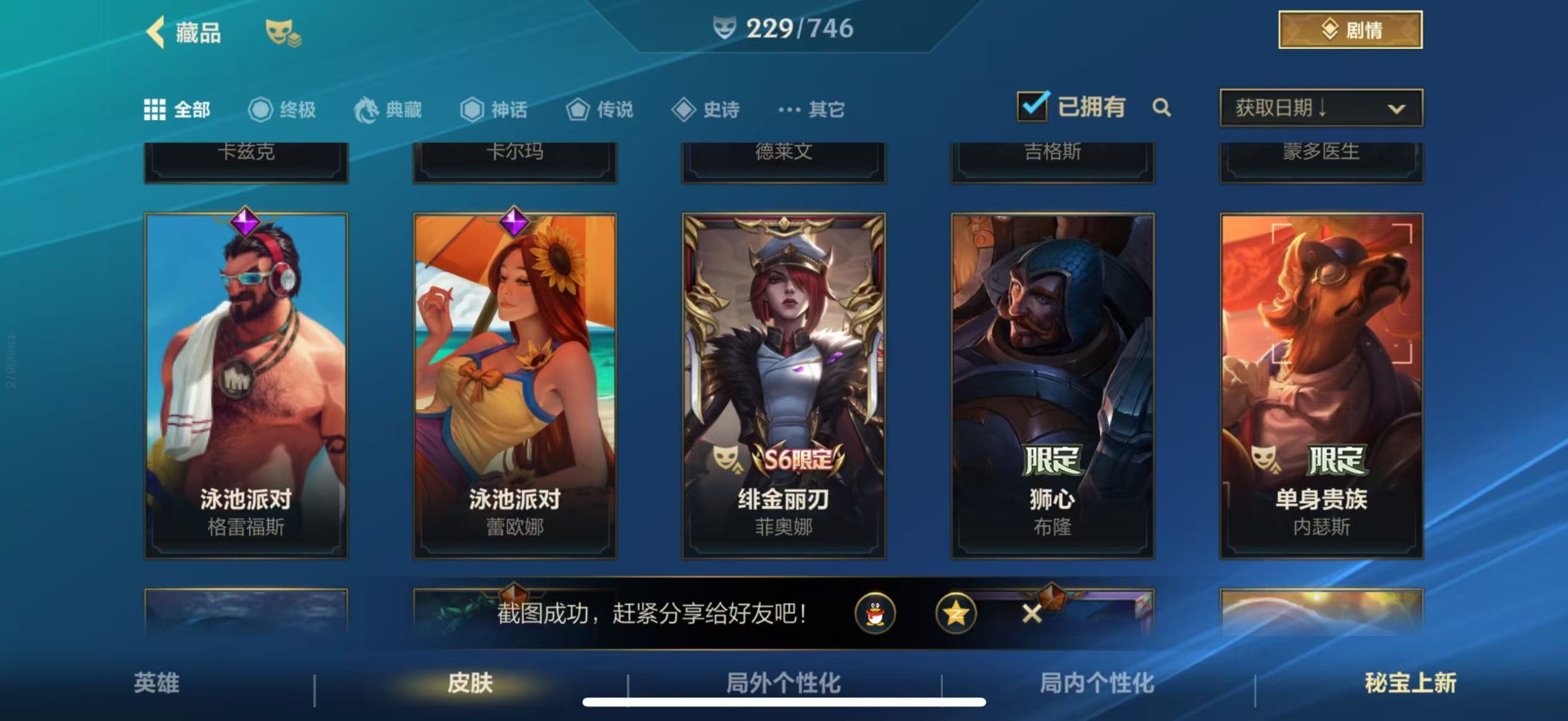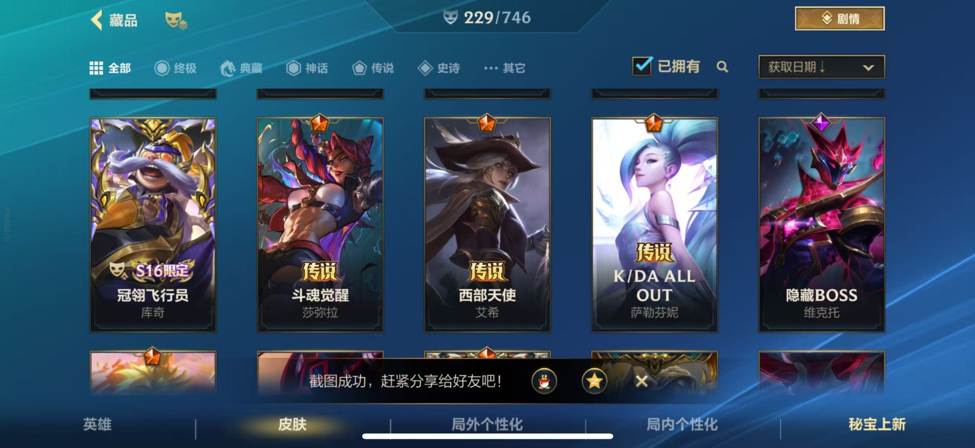 - [11385364]V7 1典藏 1无双 3珍品传说 6传说 117英雄 188皮肤 可修改实名 女号 优质装备:神鉴启示录,小乔时之魔女(小乔无双),酷洛米之心,大耳狗之梦,音你心动-小乔,大乔-时之奇旅,小动物乐团 珍品传说:兔狲·蓬尾 珍宝阁皮:妄想食味,蔷薇恋人 限定皮:愿照·福禄聚(蔡文姬年限),愿照·众生和(妲己年限),鸣野蒿,时之彼端,白鹤梁神女,遇见飞天,五谷丰年,游园惊梦,李小龙,寅虎·心曲(虎婆),时之奇旅-妲己 史诗皮:鸭鸭历险记-刘禅,化蝶舞,龙之律动,布丁狗之誓,小牛鸭,石田雨龙,茶境仙,幻珠鲛人,战舞者,涂山红红,奇遇星旅,百相守梦-黄忠,遇见神鹿,紫霞仙子,江河有灵,百解令(蒙犽),冰冠公主,青蛇,偶像歌手,晚萤,银翎春语,龙骑士(小龙虾),猫狗日记-孙策,节奏热浪,女仆咖啡,摇滚巨星,水果甜心,绅士熊喵,星夜王子,心灵骇客,功夫厨神,暗隐猎兽者,幽灵船长,鬼剑武藏,心灵战警,乐园奇幻夜,舞动绿茵,诗语江南,繁星吟游(呼啦呼啦),拒霜思,缤纷独角兽,逐浪之夏,月团寄思,水晶猎龙者,曙光守护者,圣诞恋歌,鹰眼统帅,魅力维加斯