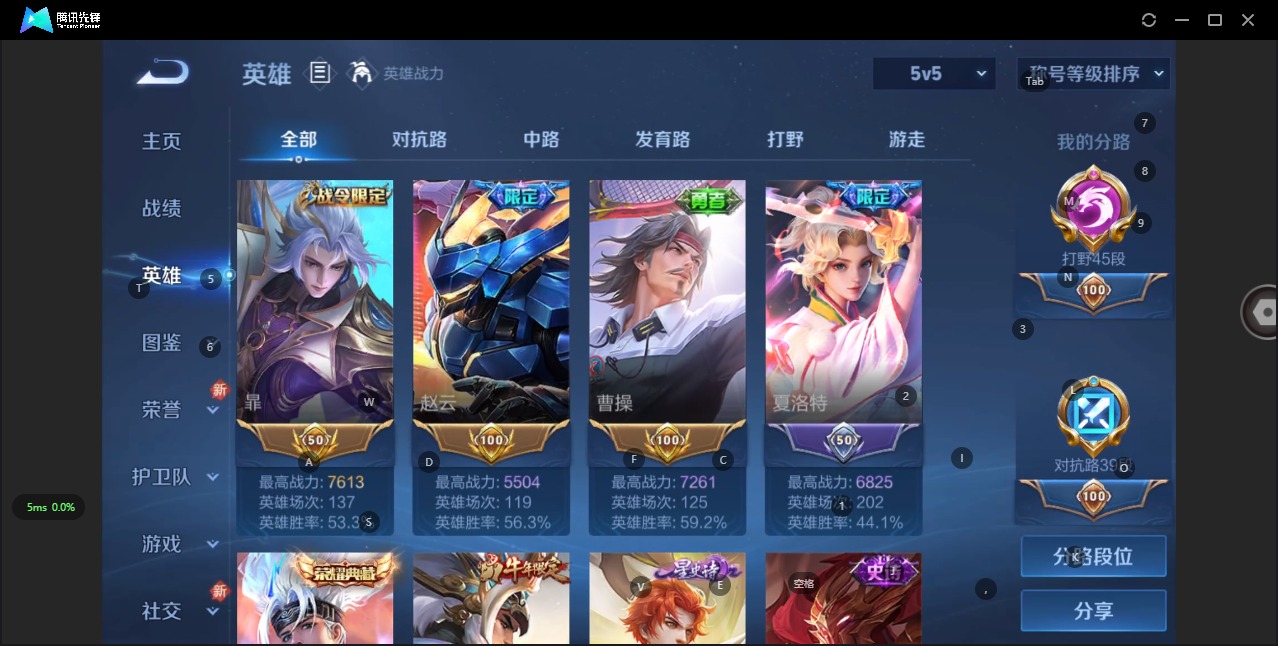 - [12254738]V7 9传说 123英雄 243皮肤 可修改实名 优质装备:炽阳神光,地狱火,地狱之眼,无双飞将,山海·炽霜斩(李信年限),记忆之芯(机甲兔),琥珀纪元马超 珍宝阁皮:妄想食味,优雅恋人,女武神 限定皮:至尊宝,白晶晶,时雨天司(水龙头),神威(电光马子),飞衡(韩信年限),遇见飞天,高山流水,五谷丰年,游园惊梦,梁祝,岱宗(典韦年限),李小龙,冰霜恋舞曲,寅虎·赤拳(老虎年限) 史诗皮:星界战将,紫霞仙子,黄金分割率,特工魅影,千年之狐,江河有灵,百解令(蒙犽),高渐离燃音魔法,蒙恬荣光圣徽,魅语,电玩·爆裂旋风,无限星赏官,末日机甲-吕布,猫狗日记-孙策,乱世虎臣,节奏热浪,修罗,女仆咖啡,摇滚巨星,水果甜心,天才门将,星夜王子,心灵骇客,德古拉伯爵,暗隐猎兽者,幽灵船长,鬼剑武藏,心灵战警,地狱岩魂,纤云弄巧,繁星吟游(呼啦呼啦),拒霜思,缤纷独角兽,乘风破浪,逐浪之夏,水晶猎龙者,金属风暴,原初追逐者,圣诞狂欢,圣诞恋歌,鹰眼统帅,魅力维加斯,黎明之约,无心,未来纪元-赵云