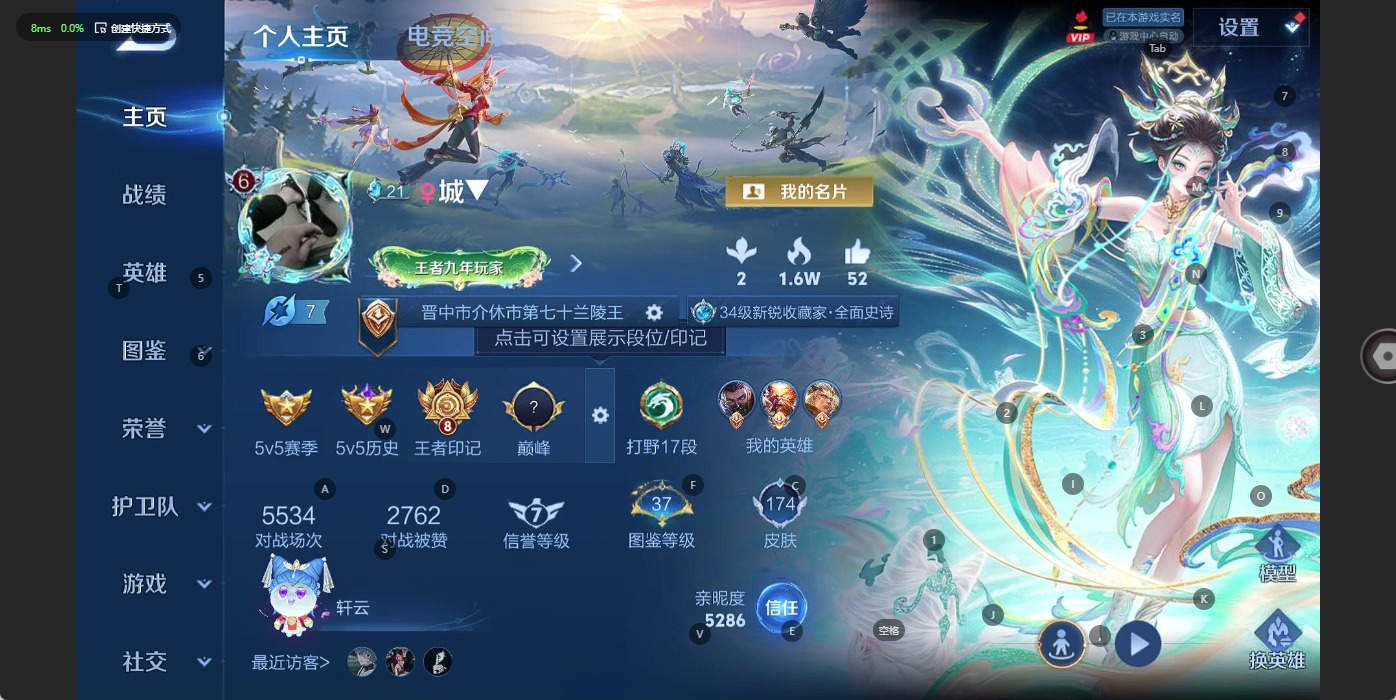 - PX_2091420-实名: 可修改 贵族等级: V5 英雄数: 60 皮肤数: 37 传说皮: 云诺千山 限定皮: 愿照·千秋盛