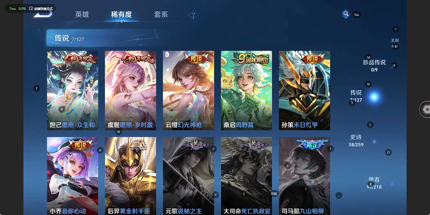 - [11687533]V10 7典藏 1珍品无双 5无双 6珍品传说 88传说 126英雄 570皮肤 典藏英雄武则天 可修改实名 优质装备:馥梦繁花,天鹅之梦(小乔典藏),倪克斯神谕(宇宙婆娘),九霄神辉(木兰典藏),赤影疾锋,幻阙歌(貂蝉典藏),青丘·九尾(妲己无双),韩信群星魔术团(韩信无双),花合斗,离恨烟(公孙离无双),拾光映像(瑶典藏),雪境奇遇-甄姬,最初的交响(伽罗典藏),怪盗基德,器灵·落星盏,酷洛米之心,大耳狗之梦,朽木白哉,黑崎一护,黄金狮子座,黄金射手座,冠军飞将,云鹰飞将(小将军),绛天战甲(鸡嘴战神),黄金白羊座,猫影幻舞,久胜战神,炽阳神光,一念神魔,云霓雀翎,末日机甲-孙尚香(绿蚂蚱),地狱火,仲夏夜之梦(大飞蛾),音你心动-小乔,零号·赤焰,海洋之心,地狱之眼,飞鸢探春,音你心动-周瑜,胖达荣荣,乞巧织情,时之恋人-刘备(电焊工),游龙清影(小青龙),淬星耀世,超时空战士-狄仁杰,遇见胡旋,末日机甲-孙策,花朝如约(花篮子),挚爱之约,挚爱花嫁,无双飞将,音你闪耀(rap皮),碎云,天秀幻梦,山海·琳琅生(小乔年限),炽翼辉光(娃娃菜牛角包),燃星之曲,浮生妄,记忆之芯(机甲兔),青丘·九尾,灼幽烈阳,妄想实况,妄想奇谈,惊梅引,遇见神鼓,大乔-时之奇旅,永恒水手月亮,小动物乐团,霜月吟,澜逐花归海,艾琳觅芳踪,金乌负日,黄金天蝎座,云中君群星魔术团,朵莉亚心动手记,牧神诗旅,诡秘之主,千山共赴,涂山容容 传说皮:貂蝉曦玄引,典韦战鼓燎原,落雪白狼,死亡执政官,九山相柳,云诺千山,铠冥王哈迪斯,续相思,星之鸣奏,幻光神枪 珍宝阁皮:妄想食味,优雅恋人 限定皮:愿照·九州拓(澜年限),愿照·福禄聚(蔡文姬年限),愿照·岁时盈(虞姬年限),愿照·山河定(司空震年限),愿照·众生和(妲己年限),愿照·千秋盛(女娲年限),逐霄战戟,映山客,陌上桑,鸣野蒿,夏侯惇霜北刀,至尊宝,凤凰于飞,太华(伽罗年限),异界灵契(白毛香),傲雪梅枪,寅虎·展翼(孙膑年限),前尘镜,星穹之声,时之彼端,白鹤梁神女,魔法小厨娘,白晶晶,时雨天司(水龙头),神威(电光马子),山海·碧波行(瑶年限),瑞麟志(木兰年限),至美·乘鲤谣,至美·化雀舞,遇见飞天,高山流水,诗剑行,怒海麟威,降魔,五谷丰年,游园惊梦,梁祝,御风骁将(吕布年限),逐梦之星,岱宗(典韦年限),天狼溯光者,虎