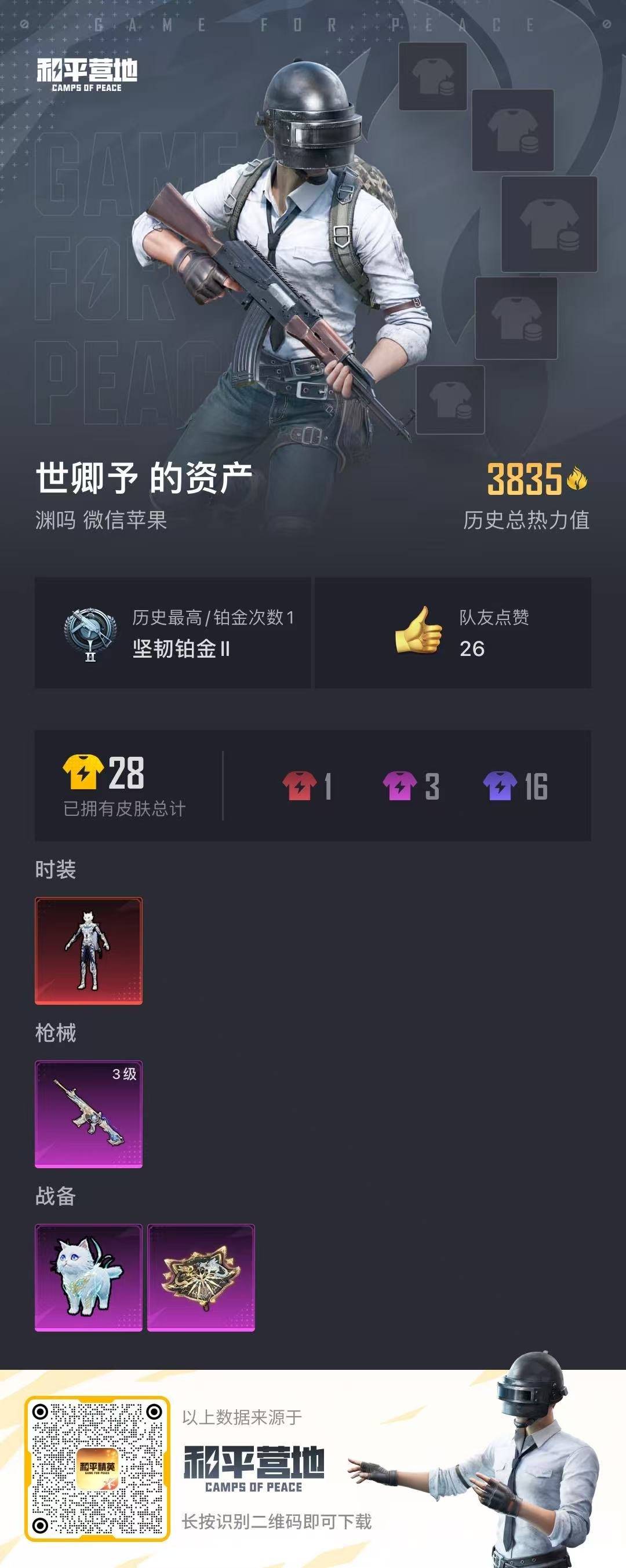 - [12087520]总资产:134.3M 7传说枪械 哈夫币:120K 进阶安全箱(9.17到期) 可二次 可修改实名 烽火地带段位:青铜 全面战场段位:上等兵 传说武器皮肤:M4A1突击步枪-阿米娅,CAR-15突击步枪-阿米娅,复合弓-黑-天际线,AK-12突击步枪-特斯拉线圈,SR-3M紧凑突击步枪-特斯拉线圈,UZI冲锋枪-特斯拉线圈,勇士冲锋枪-能天使-午夜邮差 史诗武器皮肤:AUG突击步枪-蝮蛇,MP5冲锋枪-深海恐惧,勇士冲锋枪-深海恐惧,SV-98狙击步枪-林中猎手,M250通用机枪-囚徒,SCAR-H战斗步枪-囚徒,Vector冲锋枪-阿萨拉文明