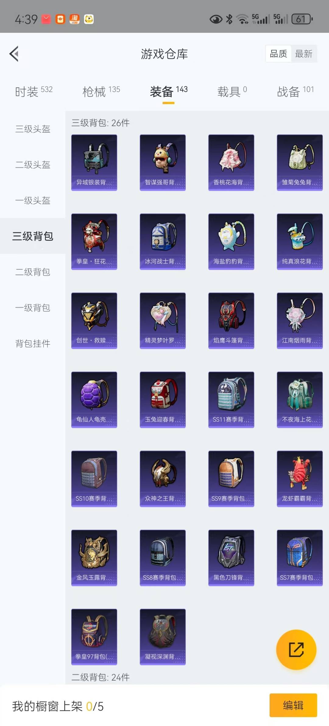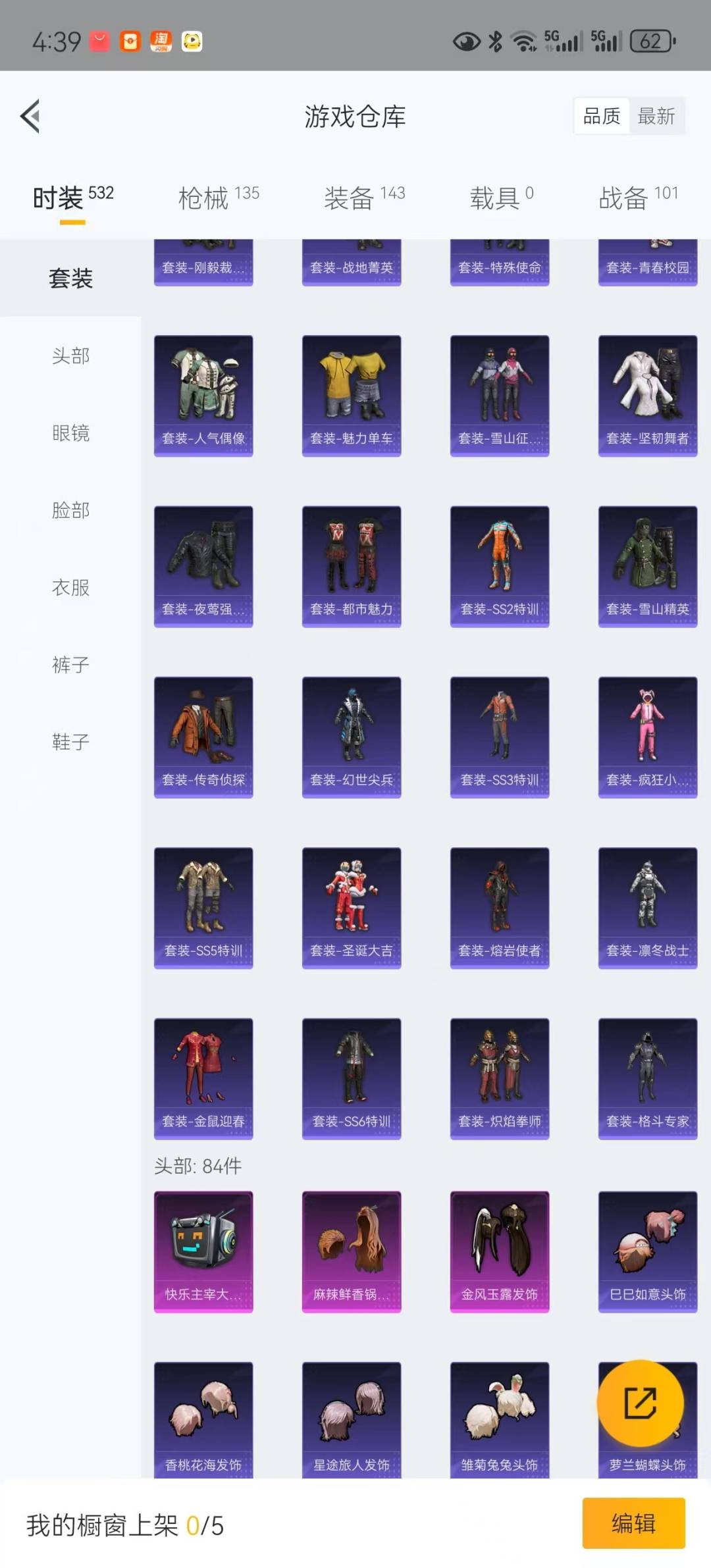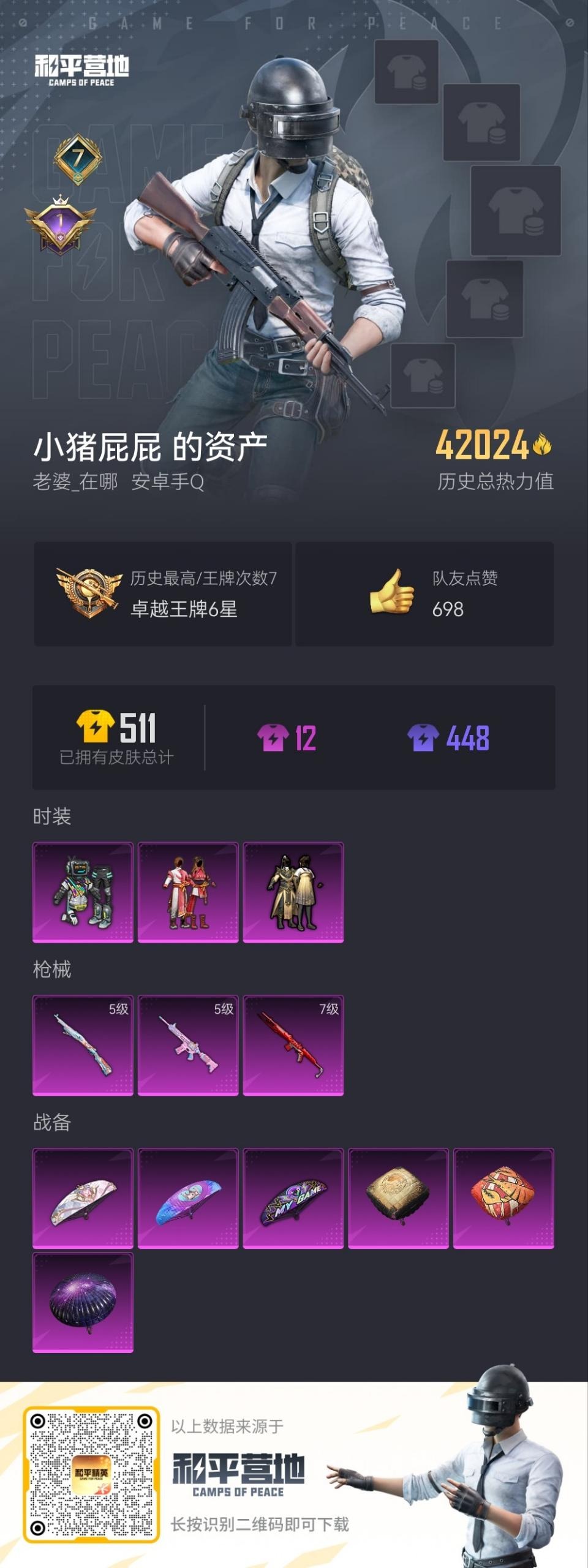 - [12203979]3粉装 6特效枪 16印记 可二次 可修改实名 身法装备:都市猎人 优质装备:都市猎人,M762-青锋波束,千金淑猫,GROZA-镜光银凌,AUG-暖羊咩咩,MK12-雪月幻音,墨金战记,羊梦糖心,Kar98K-巳巳如意 热门装扮:鹰眼刺客,深海小丑鱼,都市猎人 稀有枪皮:DP-28-豹影疾电 五级特效枪:五级M762-青锋波束,五级GROZA-镜光银凌,五级Kar98K-巳巳如意,五级DP-28-豹影疾电,五级AUG-暖羊咩咩 四级特效枪:四级MK12-雪月幻音 紫色装扮:田园牧歌,轻风白浪,SS22特训,莱茵河畔,白啸长虹,SS23特训,幻彩翩翩,妙红点点,龙舌兰冰茶,娇憨猪猪,酸甜橘柚,萌趣咩咩,SS21特训,SS31特训套装,人气偶像,冰川特警,冷焰舞者,SS30特训套装,SS33特训套装,青涩时光,顶瓜瓜,SS20特训,猎梦纪元,SS19特训,军刀雅典娜,竞技角斗士,覆海蛟龙,甜心亚梦,虚音幻奏,都市魅力,酒红色名流,酷潮明星,野性山猫,野性战心,长空猛禽,霓虹街区,青年教官,青春校园,风暴特警,缤纷果语,荣耀,蓝彩潮人,蓝色运动,街头潮人,飞行日记,魅力单车,鹤鸣,麻辣教官,黄色伏地魔,黄色名流,黄色运动,黑色伏地魔,龙的传人,龟仙人,冰河战士,龙魂突击队,蝶变,香桃花海,沙漠毒蛇,极地朋克,极速红龙,柠萌假日,橘黑制服,沙漠兵团,暗金炫舞,海岛探路者,深蓝色名流,清新柠檬,幻影武者,完美偶像,帅气教官,幻世战舞者,战地督导,探宝勇士,湖蓝色名流,绮丽涂鸦,白熊同盟,白色伏地魔,破晓战魂,破蛋小黄鸡,空岛之星,竞技达人朋克,红色运动,王牌教练,牛气冲天,灼焰舞者,炫蓝之夏,热血青春,燃烧卡路里,牛气满满,猛禽,特殊使命,特训学院,猎鹰,SS29特训,星途旅人,SS28特训,异域银装,鱼渊荷华,玉兔迎春,燕燕于飞,巳巳如意,森林游猎者,风玲,竞技名士,小狗蛇点点,惊鸿侠骨,SS24特训(SS24特训套装),SS25特训,锦衣飞扬,SS27特训,SS26特训,智谋强哥,精神漫游,大橘大利,耀粉歌者,春日漫步,粉恋花,蓝冰羽,紫幽梦,SS32特训服(SS32特训套装),绯格组合,萌黄之夏,白糯汤圆,恋语绒绒,漫步者,蓝调潮人,冰冻风暴,光之冒险 优质战备:星途旅人降落伞,行星泡泡降落伞,忍者神龟降落伞,喜羊羊与灰太狼降落伞,冰川粉黛降落伞,暗夜鎏金降落伞,梦幻