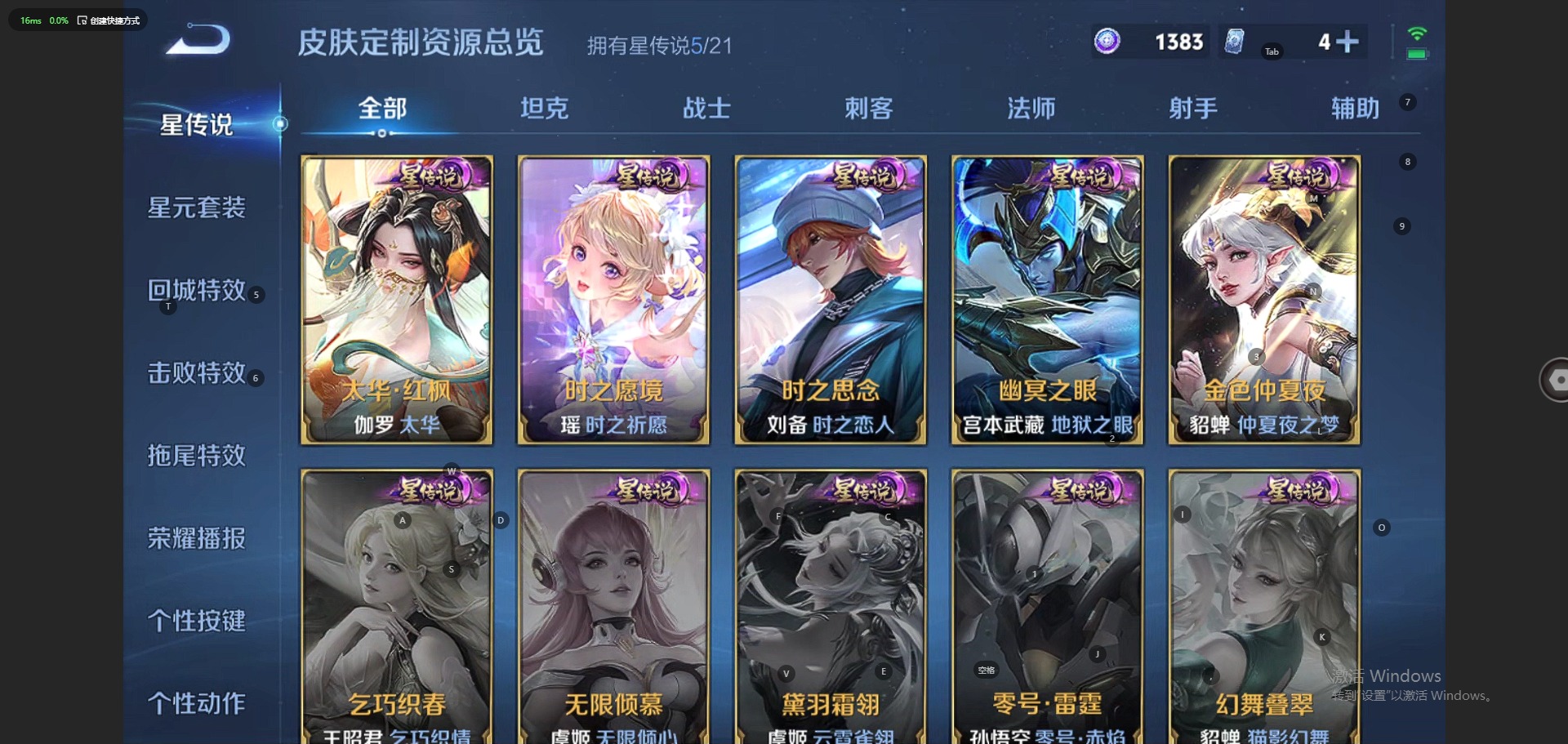 夏侯惇匿光决锋者,夏侯惇霜北刀,黄忠烈魂,苏烈玄武志,牛魔奔雷神使,露娜一生所爱,诸葛亮时雨天司,司空震愿照·山河定,貂蝉逐梦之音,裴擒虎李小龙,裴擒虎寅虎·赤拳,上官婉儿梁祝,上官婉儿天狼绘梦者,花木兰默契交锋,花木兰瑞麟志,花木兰青春决赛季,马可波罗逐梦之星,马可波罗山海·玄木吟,猪八戒猪悟能,孙悟空孙行者,孙悟空大圣娶亲,芈月白晶晶,孙悟空至尊宝,孙悟空美猴王,韩信傲雪梅枪,韩信飞衡,韩信逐梦之影,百里守约朱雀志,澜愿照·九州拓,虞姬愿照·岁时盈,王昭君映山客,大乔白鹤梁神女,哪吒逐梦之翼,铠青龙志,廉颇寅虎·御盾,伽罗太华,张飞虎魄,赵云百木心枪,赵云龙胆,孙膑天狼运算者,干将莫邪冰霜恋舞曲,典韦岱宗,后羿如梦令,兰陵王默契交锋,公孙离玉兔公主,李白诗剑行,安琪拉魔法小厨娘,艾琳陌上桑,桑启鸣野蒿,女娲补天,女娲愿照·千秋盛,百里玄策白虎志,马超神威,赵云引擎之心,妲己时之彼端,妲己愿照·众生和,蔡文姬愿照·福禄聚,瑶时之祈愿,关羽武圣,关羽冰锋战神