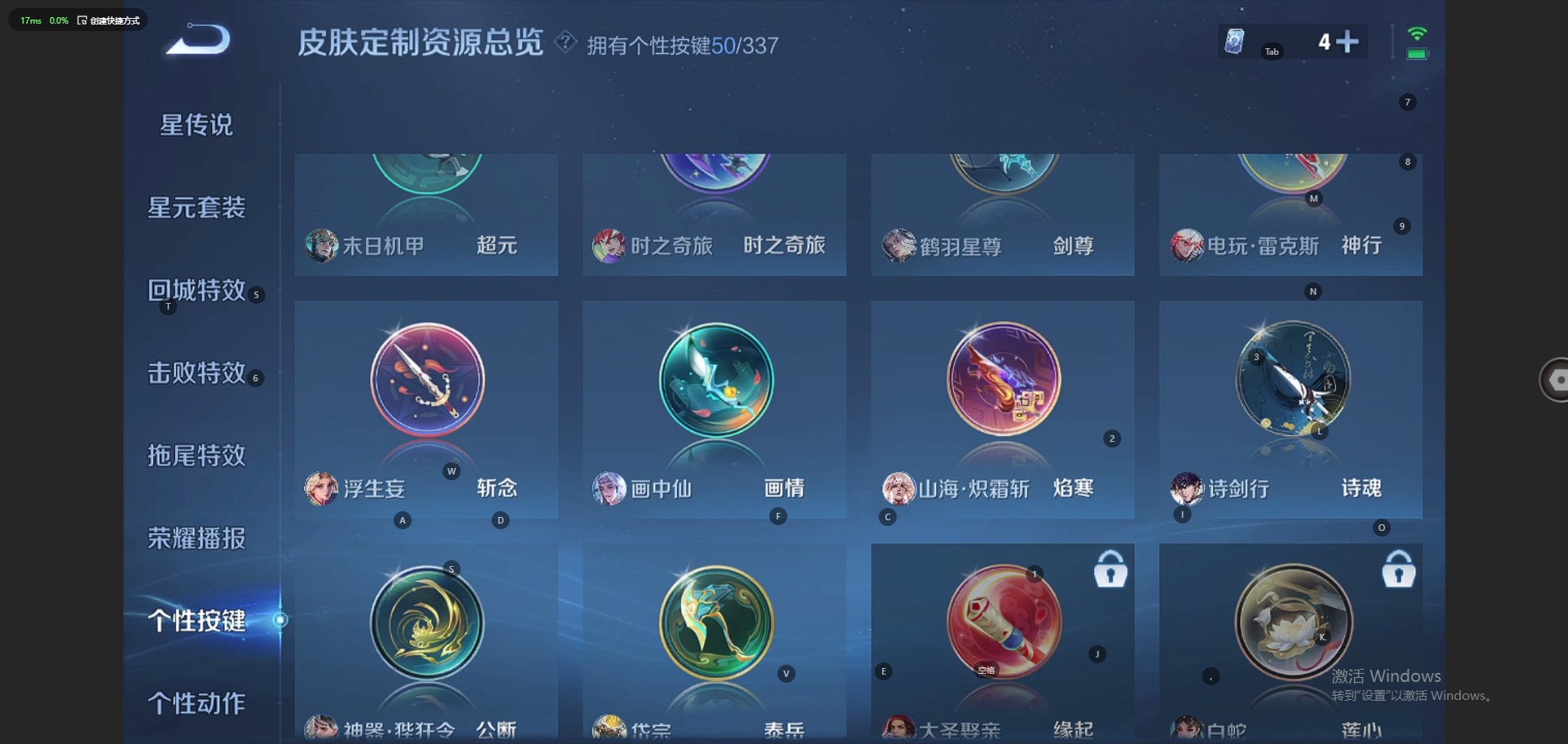 刘备时之恋人,小乔音你心动,李信一念神魔,孙尚香乘龙·问璇玑,庄周牧神诗旅,镜炽阳神光,朵莉亚心动手记,杨玉环星之鸣奏,宫本武藏惊梅引,嬴政玄雷天君,孙悟空零号·赤焰,曜云鹰飞将,曜李逍遥,云中君群星魔术团,墨子黄金天蝎座,澜逐花归海,虞姬云霓雀翎,貂蝉曦玄引,王昭君永恒水手月亮,铠冥王哈迪斯,铠琥珀纪元,赵云乘龙·铭钟鼎,张飞百相守梦,干将莫邪画中仙,孙策乘龙·淬吴钩,达摩黄金狮子座,海月金乌负日,鲁班七号时之奇旅,吕布曦玄引,亚连落雪白狼,夏洛特浮生妄,艾琳觅芳踪,西施游龙清影,西施续相思,狄仁杰神器·狴犴令,狄仁杰夜礼服假面,马超琥珀纪元,李元芳飞鸢探春,云缨幻光神枪