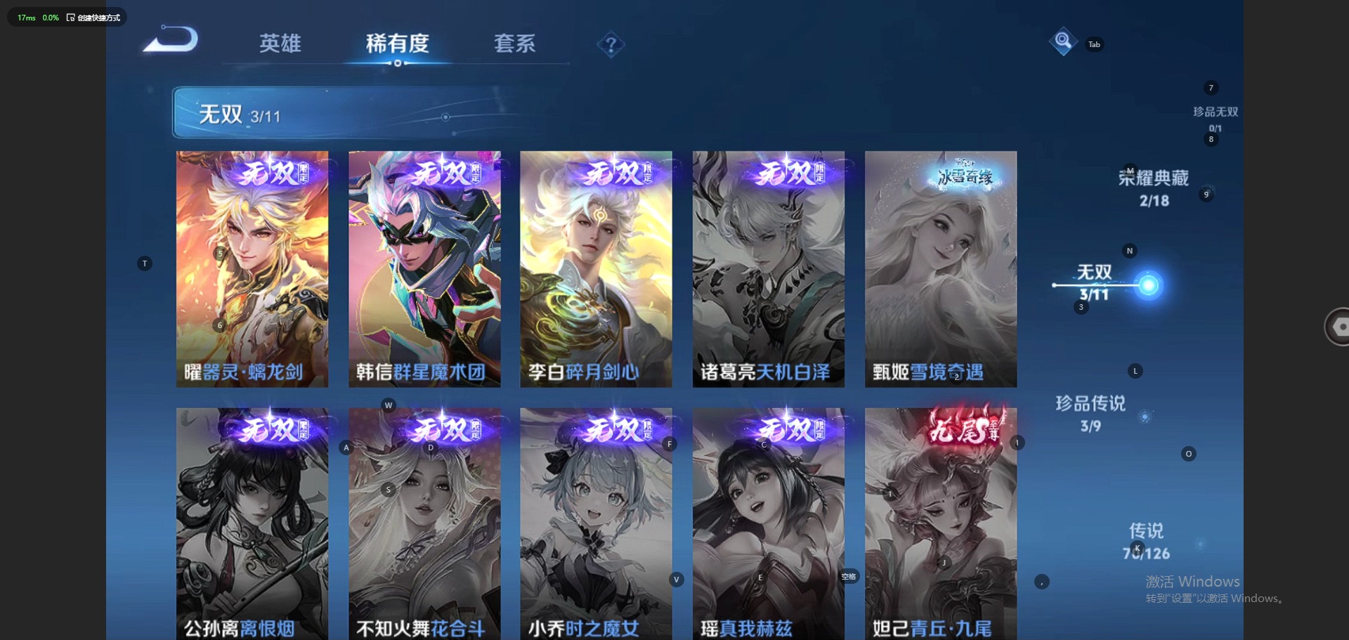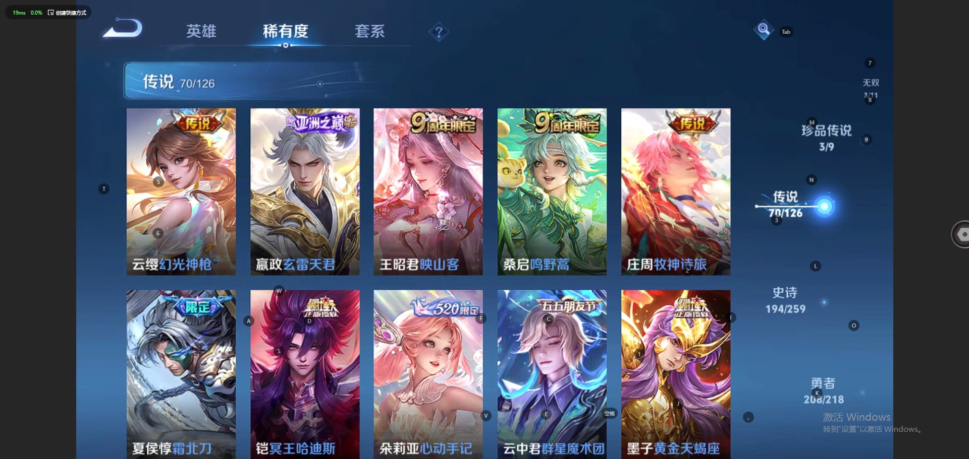 - [12191625]V8 2典藏 1无双 15传说 106英雄 235皮肤 可修改实名 女号 优质装备:全息碎影(猴子典藏),九霄神辉(木兰典藏),韩信群星魔术团(韩信无双),黄金狮子座,冠军飞将,绛天战甲(鸡嘴战神),一念神魔,末日机甲-孙尚香(绿蚂蚱),地狱火,零号·赤焰,地狱之眼,时之恋人-刘备(电焊工),淬星耀世,涂山容容 珍宝阁皮:优雅恋人 限定皮:至尊宝,白虎志(电光耗子),异界灵契(白毛香),傲雪梅枪,白鹤梁神女,神威(电光马子),瑞麟志(木兰年限),遇见飞天,高山流水,五谷丰年,冰锋战神,李小龙,逐梦之影,孙行者,猪悟能,大圣娶亲,青春决赛季,寅虎·心曲(虎婆),寅虎·赤拳(老虎年限),百木心枪,枫霜尽 史诗皮:电玩小子(小书包),白龙吟,黄金分割率,千年之狐,江河有灵,百解令(蒙犽),蒙恬荣光圣徽,冰冠公主,偶像歌手,晚萤,暗夜猫娘,龙骑士(小龙虾),猫狗日记-孙策,乱世虎臣,节奏热浪,修罗,女仆咖啡,摇滚巨星,水果甜心,天才门将,星夜王子,德古拉伯爵,暗隐猎兽者,幽灵船长,鬼剑武藏,舞动绿茵,地狱岩魂,纤云弄巧,拒霜思,缤纷独角兽,乘风破浪,逐浪之夏,水晶猎龙者,曙光守护者,金属风暴,原初追逐者,圣诞狂欢,鹰眼统帅,王者之锤,黎明之约,无心,未来纪元-赵云
